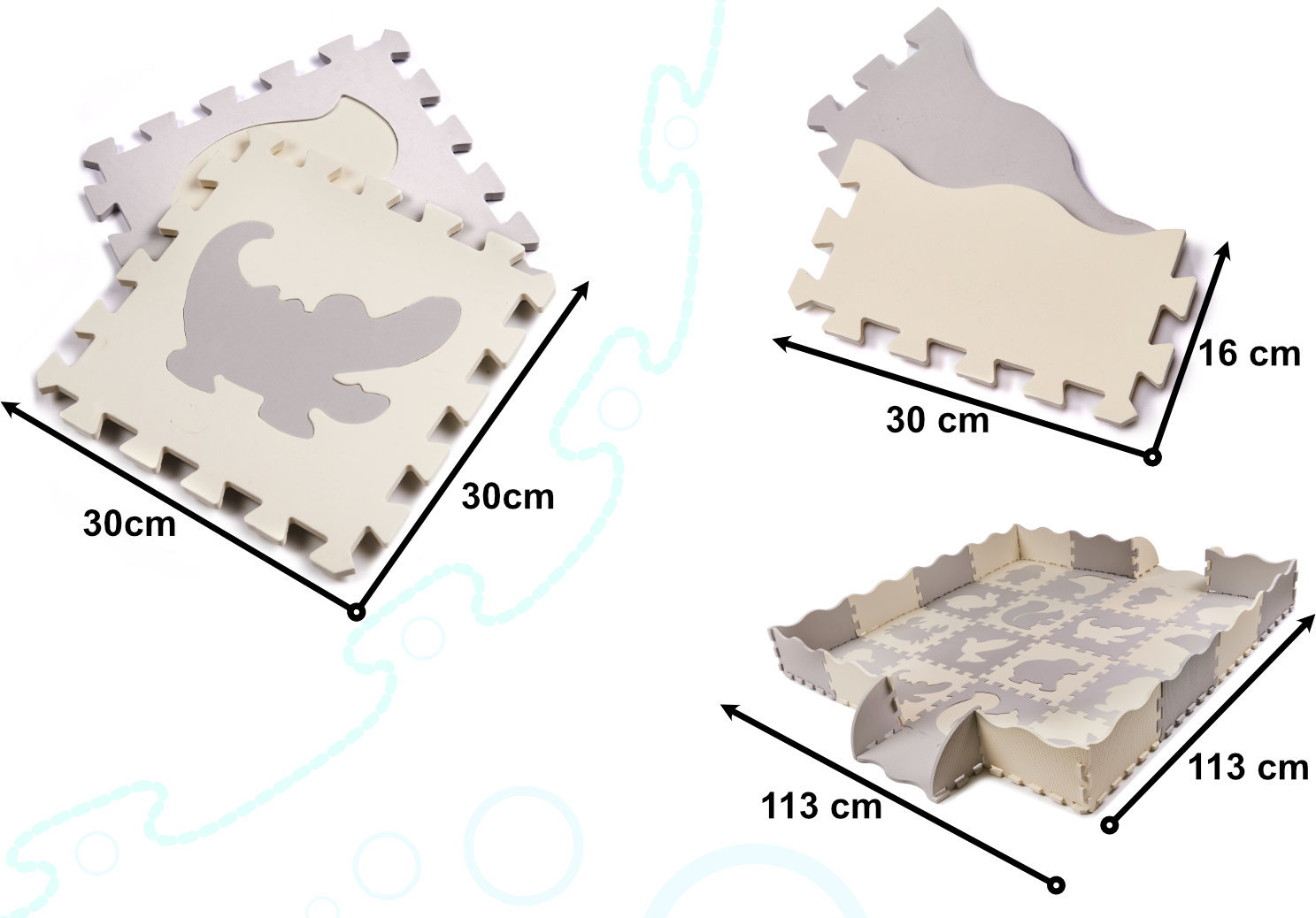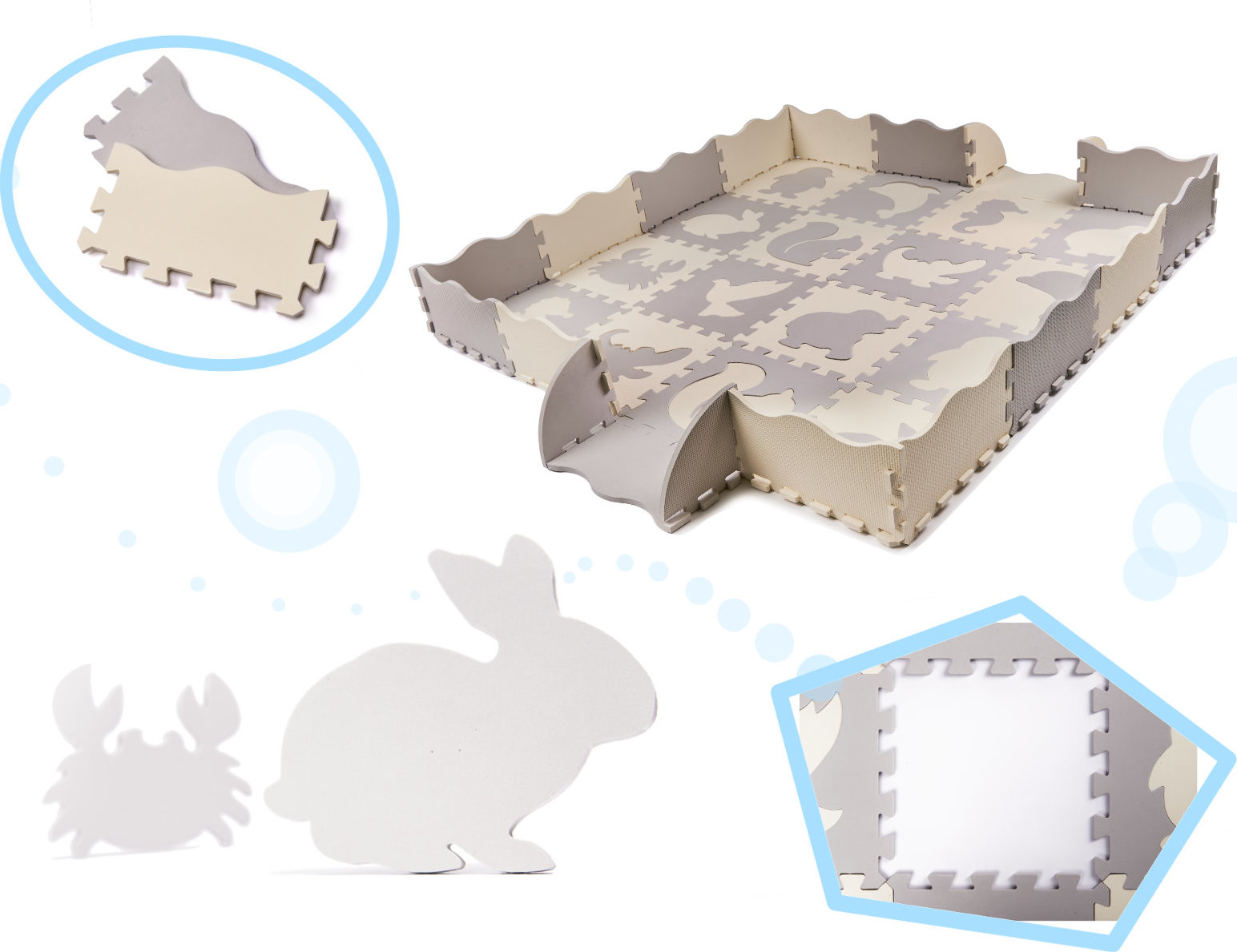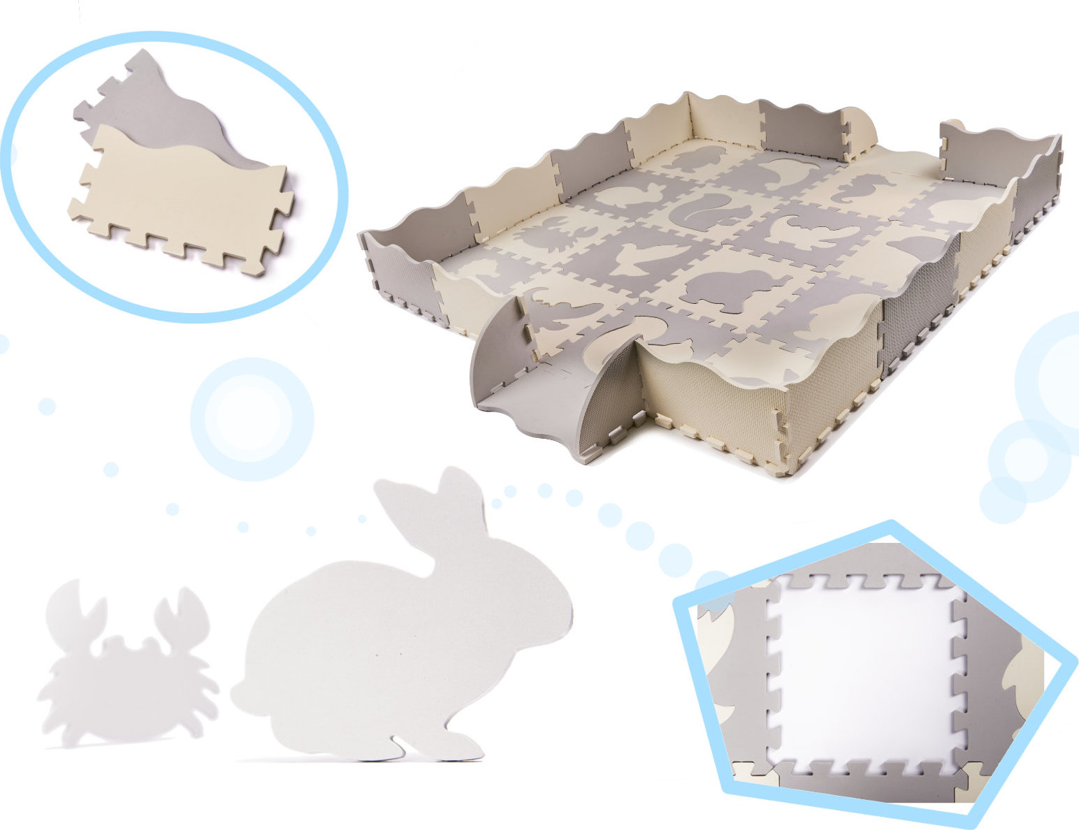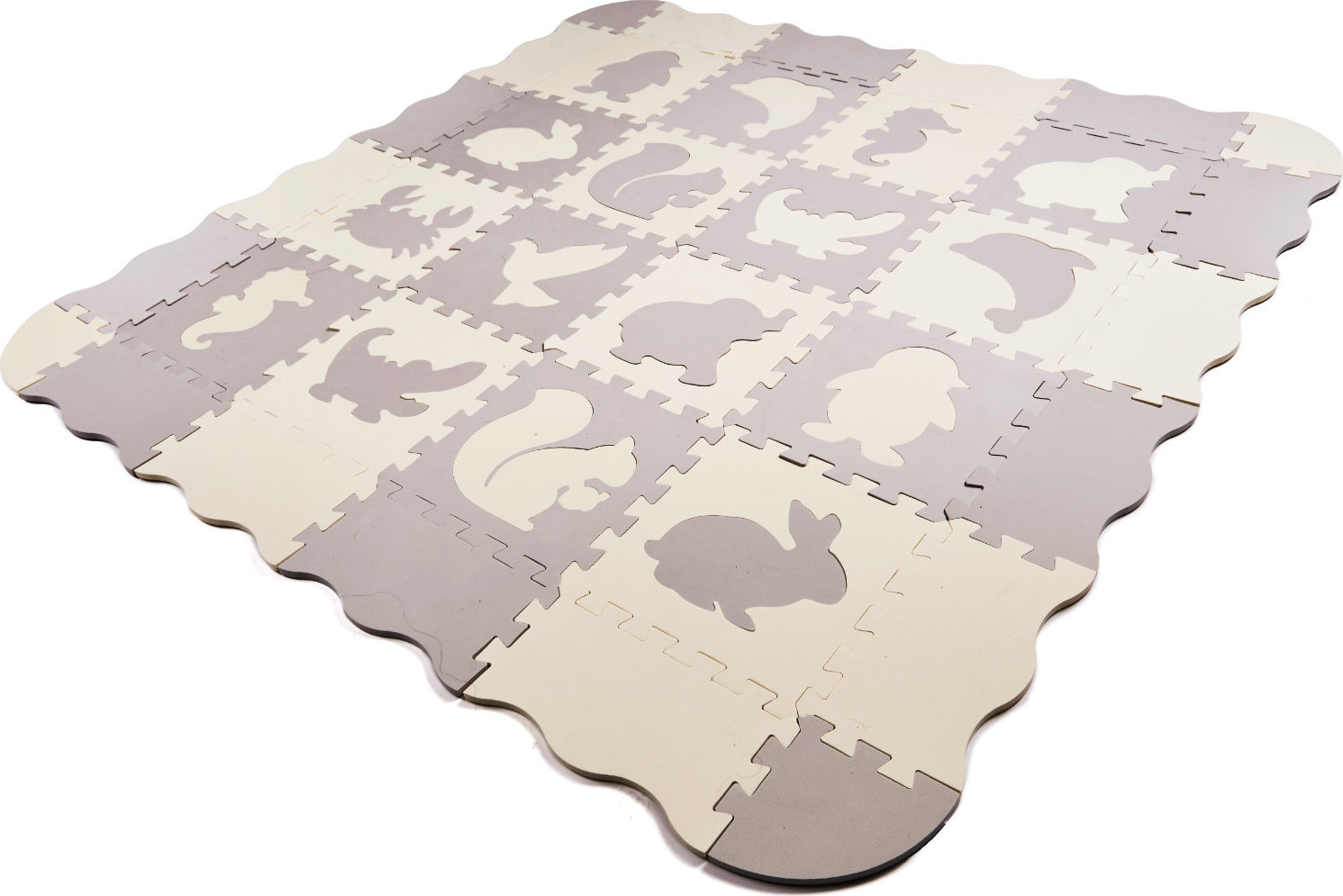 Penová puzzle podložka pre deti - 36 prvkov - šedá/ecru