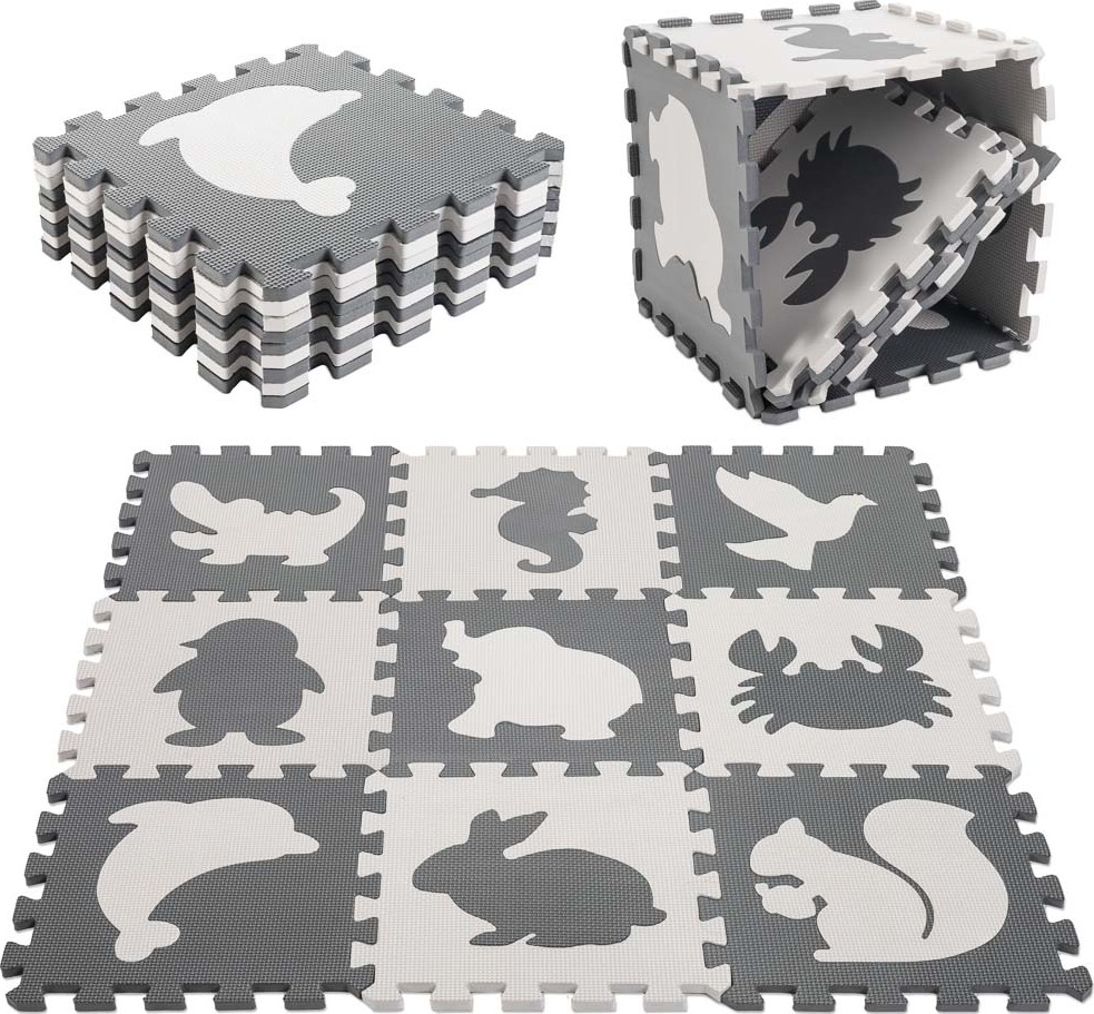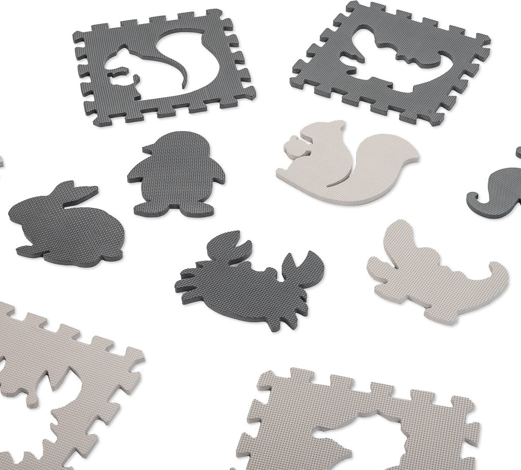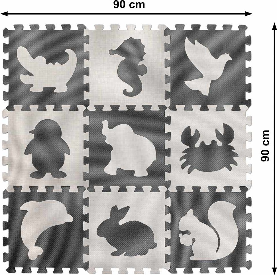 Penová puzzle podložka pre deti 9 prvkov - šedá/ecru - 85cm x 85cm x 1cm
