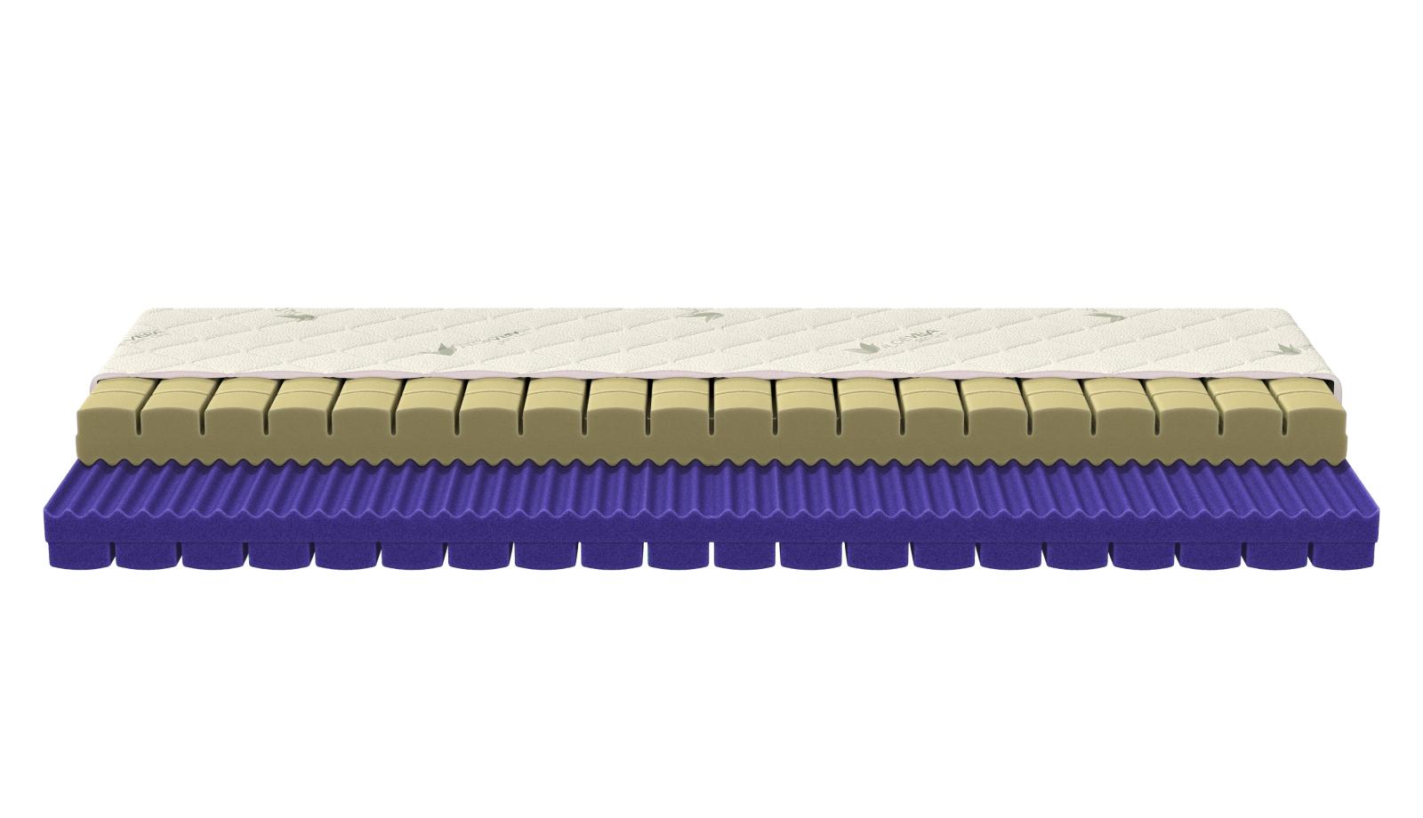 Zloženie matraca: studená HR pena (HR3746) s hustotou 37 kg/m3 so zväčšeným odporom proti stlačeniu (4,6 kPa), studená HR pena (HR3538) s hustotou 35 kg/m3 so zväčšeným odporom proti stlačeniu (3,8 kPa)
