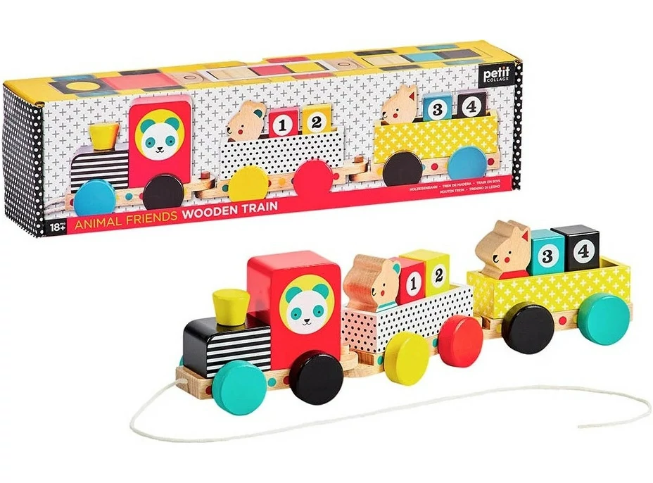 Petit Collage Drevený vláčik s číslami a zvieracími kamarátmi