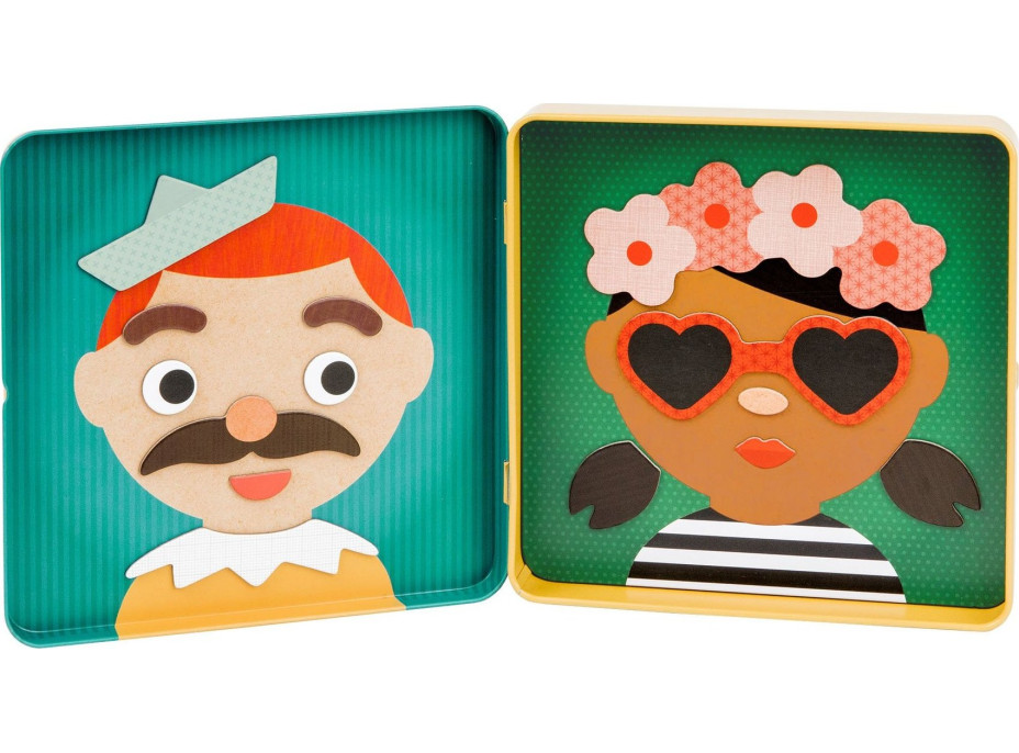 Stavajte a kombinujte vtipne ilustrované tváre do rôznych scén. K dispozícii je množstvo magnetických častí tvárí a ich doplnkov, ktoré so scénami vo vnútorných priestoroch odolné kovové krabičky tvoria praktickú sadu na cesty. Hra ponúka až 100 možných kombinácií ponúkajúcich veľký priestor vlastnej fantázii.