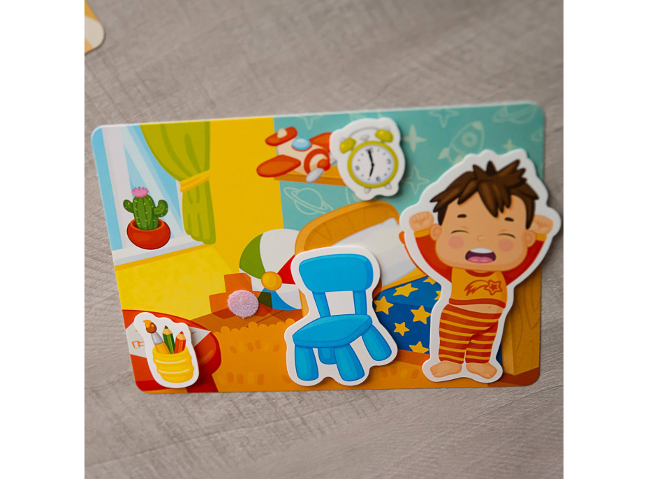 Trénujte koordináciu ruka - oko, jemné motorické zručnosti a spoznajte deatily svojho každodenného života. Vybavte si vlastnú domácnosť! Kam patrí hrniec - do kuchyne alebo do vane? A kde si má chlapec vyčistiť zuby? Nájdite správne odpovede a rozmiestnite predmety na ich miesta v každej miestnosti.