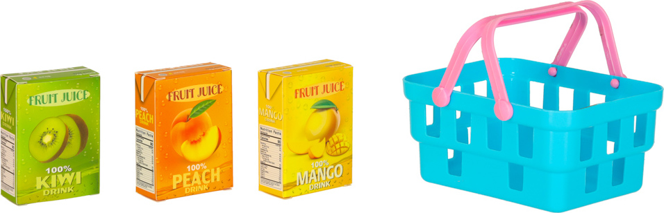 - Prvky: košík, ovocie, mlieko, mliečny koktail, džús, kečup, voskovaná utierka, imitácia mixéra
