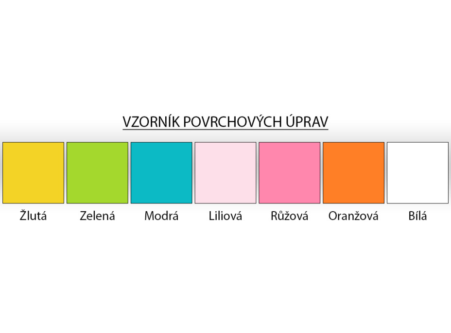 Grafika nábytku je natlačená ekologickými farbami, ktoré sú tvrdené UV žiarením (tlač má vysokú odolnosť proti oderu a poškrabaniu - nejedná sa o nálepku).