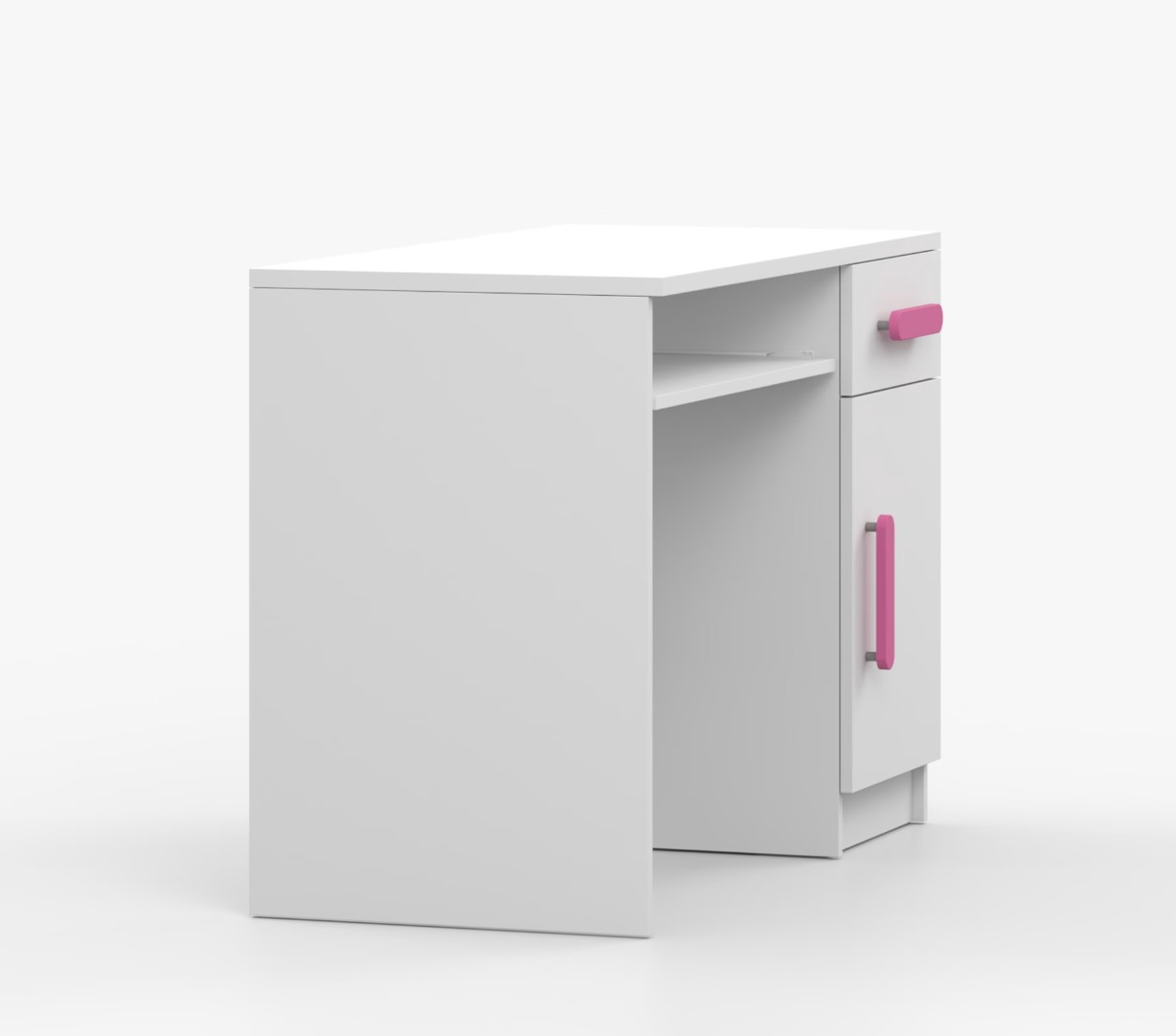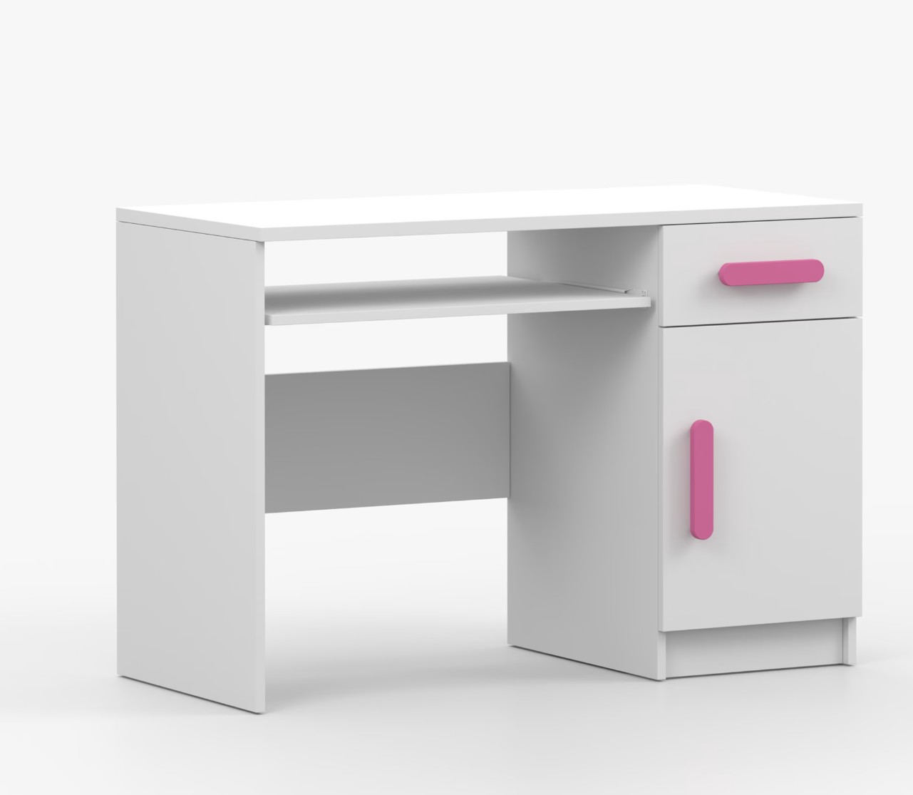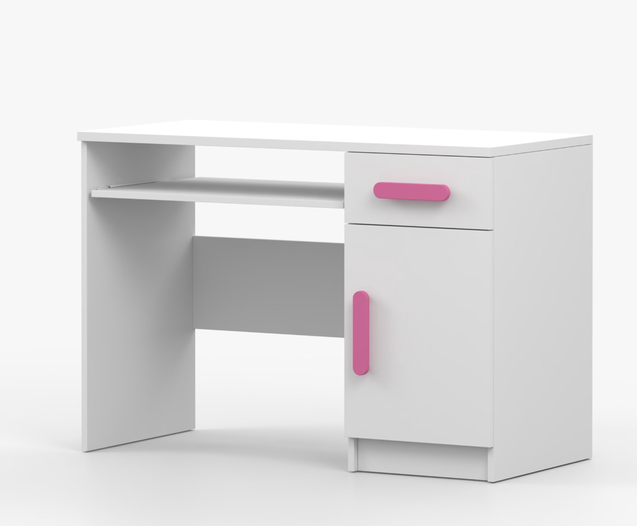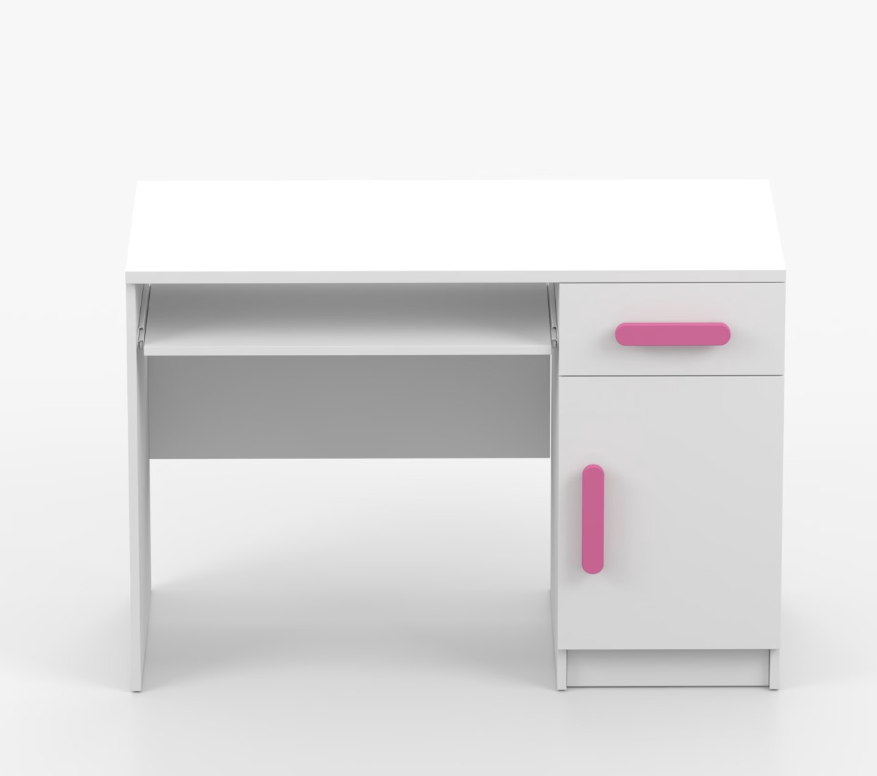 Pre študentov aj kancelárske prostredie je písací stôl SMYK ideálnou voľbou. Ponúka veľkú pracovnú plochu, na ktorej nájdete dostatok miesta na prácu aj štúdium. Zásuvka pod pracovnou doskou umožňuje uloženie klávesnice počítača a šuplík na príslušenstvo uľahčí organizáciu pracovného priestoru. Praktická skrinka s policou je umiestnená pod šuplíkom. Farebné úchytky z PVC pridávajú zaujímavý designový prvok k tomuto praktickému kusu nábytku.