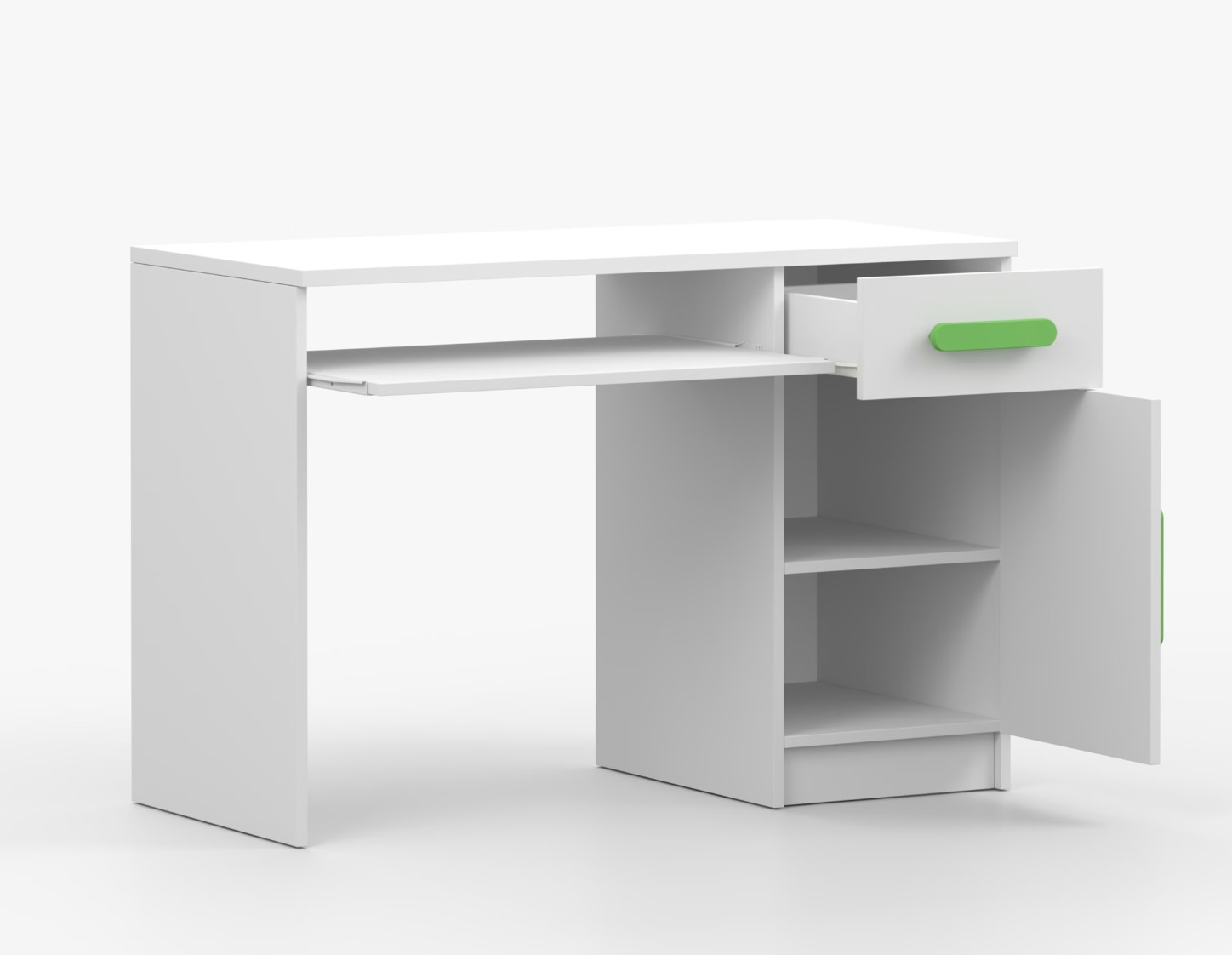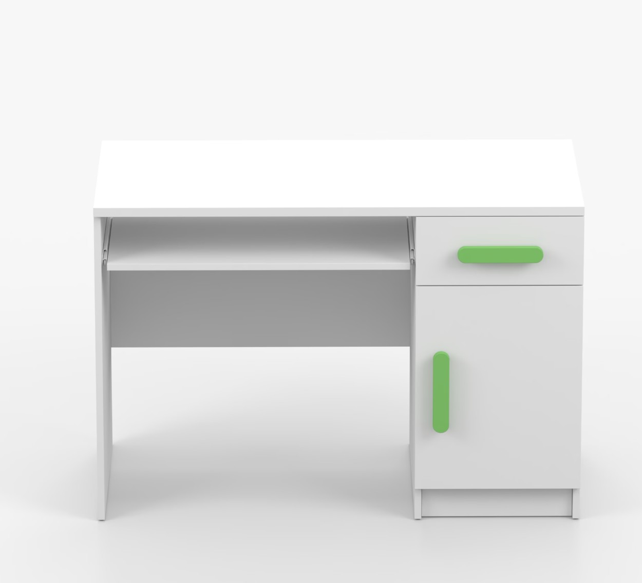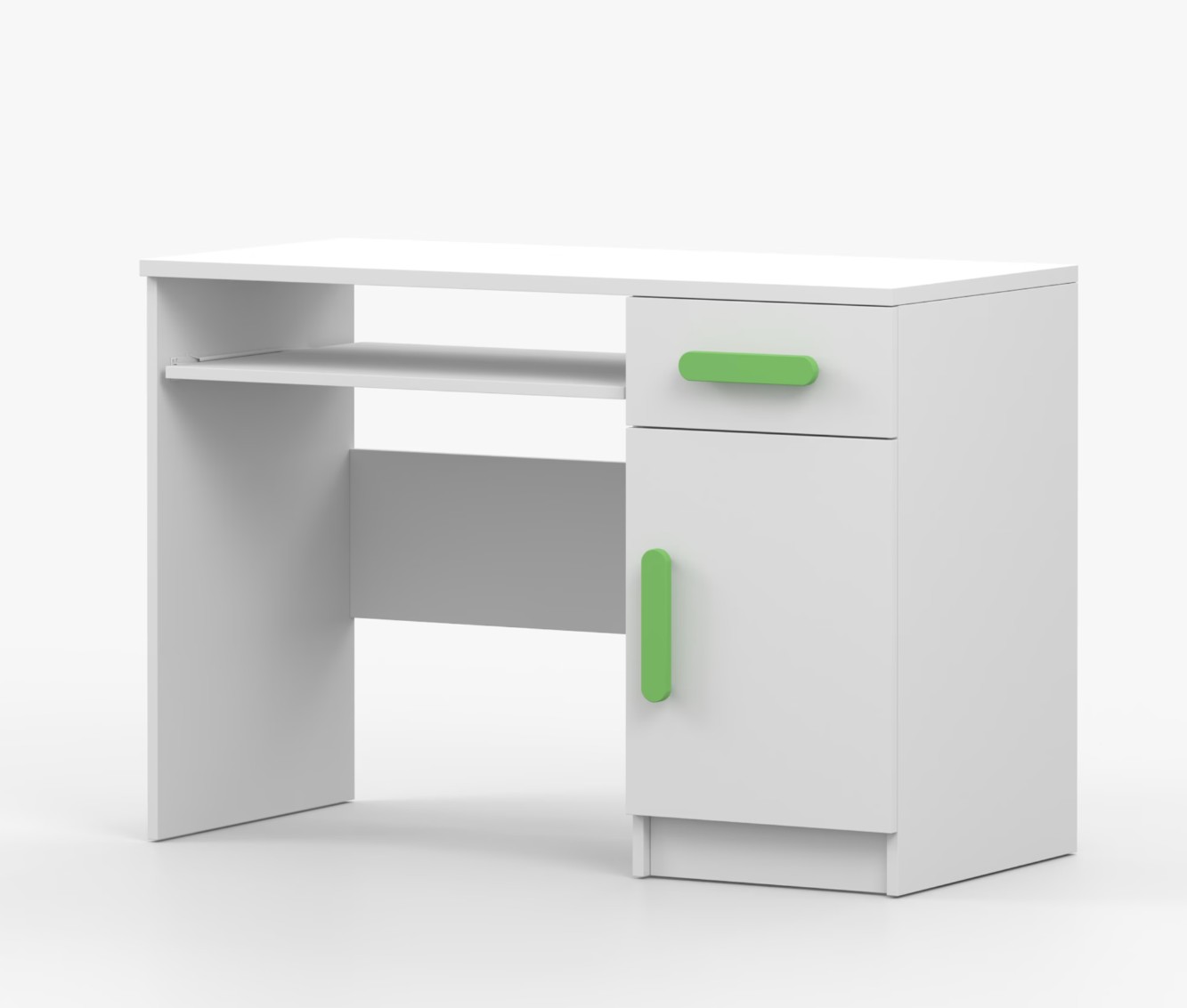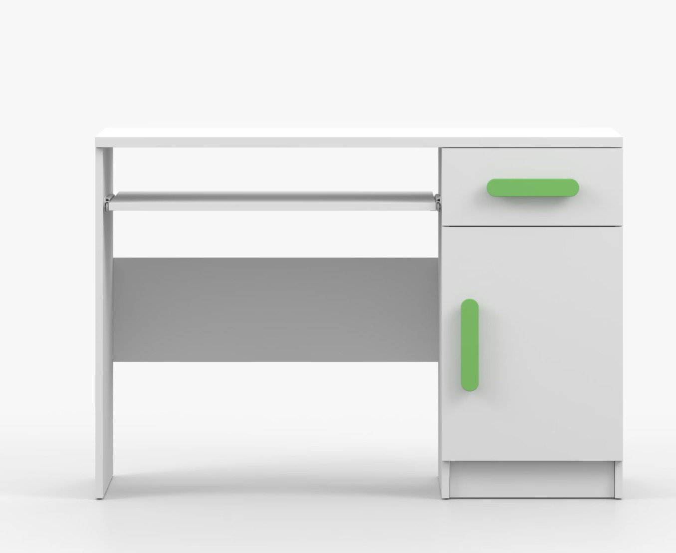 Pre študentov aj kancelárske prostredie je písací stôl SCOUT ideálnou voľbou. Ponúka veľkú pracovnú plochu, na ktorej nájdete dostatok miesta na prácu aj štúdium. Zásuvka pod pracovnou doskou umožňuje uloženie klávesnice počítača a šuplík na príslušenstvo uľahčí organizáciu pracovného priestoru. Praktická skrinka s policou je umiestnená pod šuplíkom. Farebné úchytky z PVC pridávajú zaujímavý designový prvok k tomuto praktickému kusu nábytku.