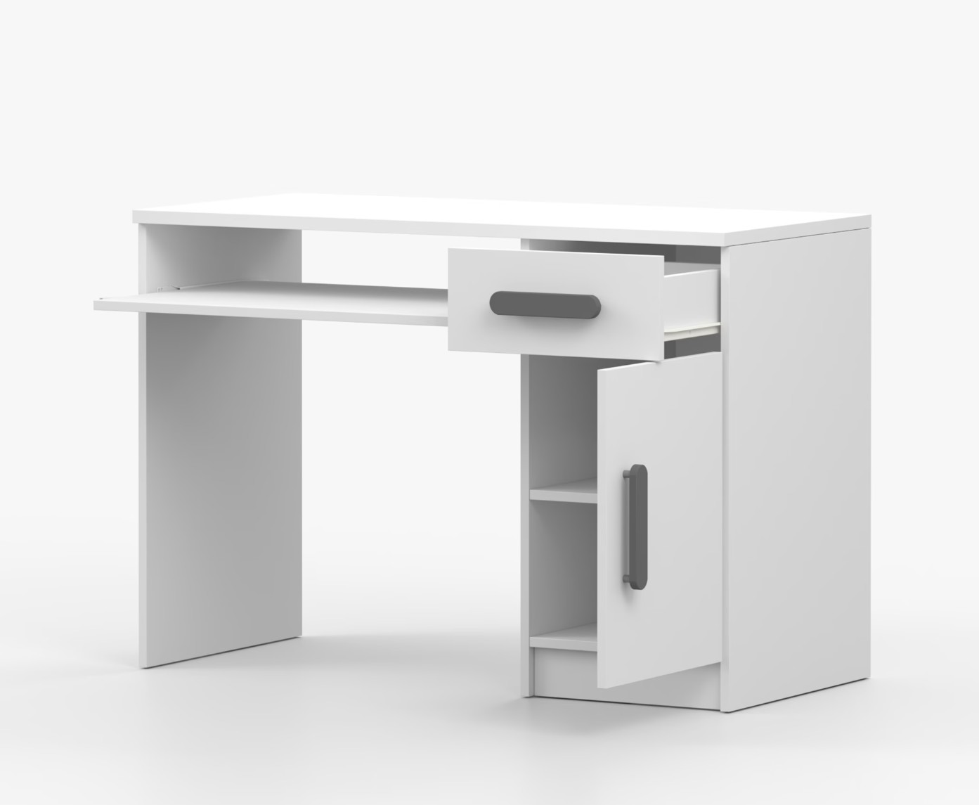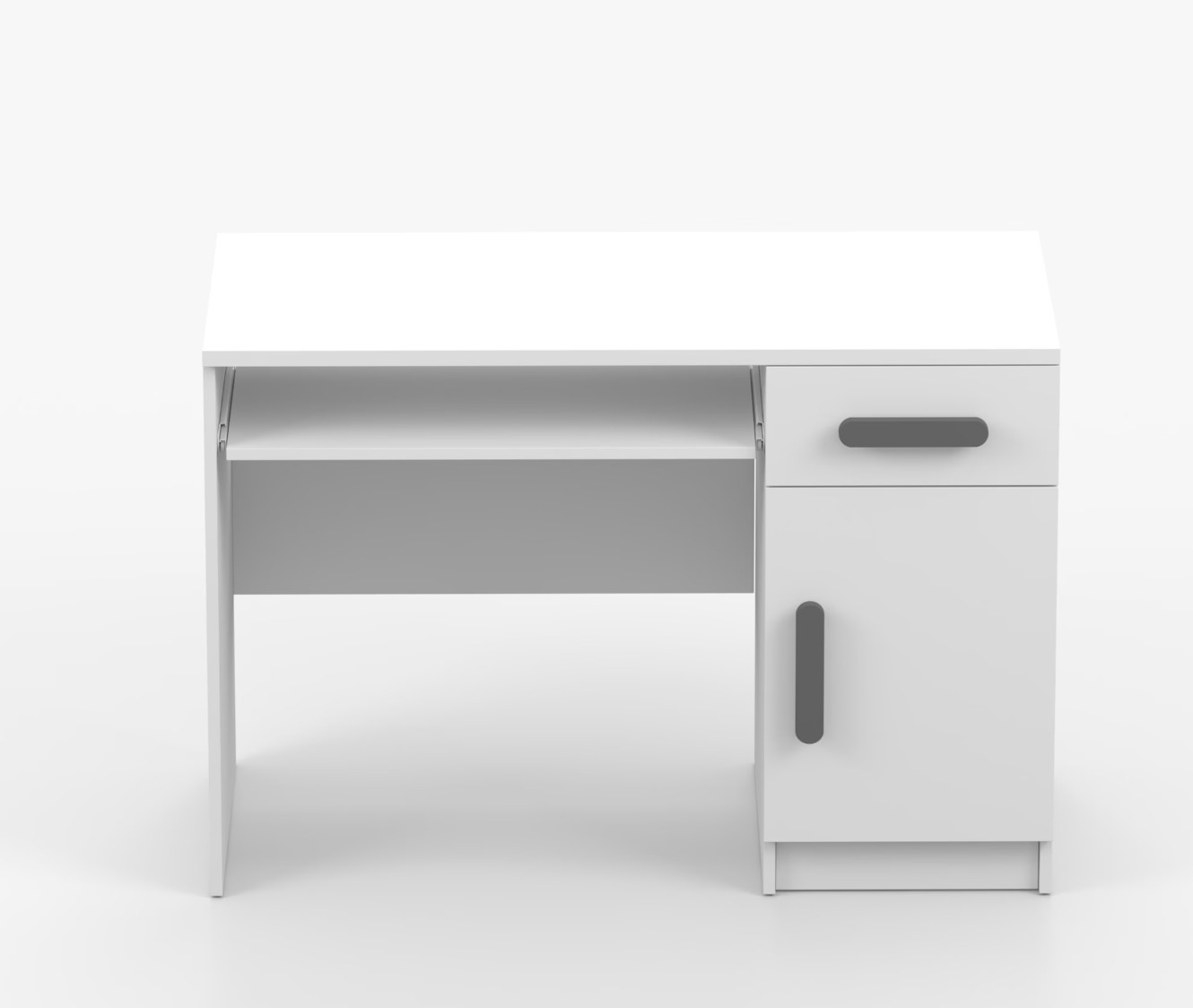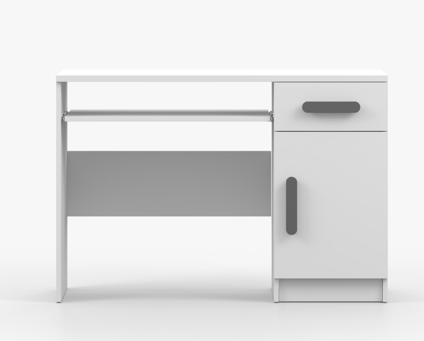 Pre študentov aj kancelárske prostredie je písací stôl SCOUT ideálnou voľbou. Ponúka veľkú pracovnú plochu, na ktorej nájdete dostatok miesta na prácu aj štúdium. Zásuvka pod pracovnou doskou umožňuje uloženie klávesnice počítača a šuplík na príslušenstvo uľahčí organizáciu pracovného priestoru. Praktická skrinka s policou je umiestnená pod šuplíkom. Farebné úchytky z PVC pridávajú zaujímavý designový prvok k tomuto praktickému kusu nábytku.