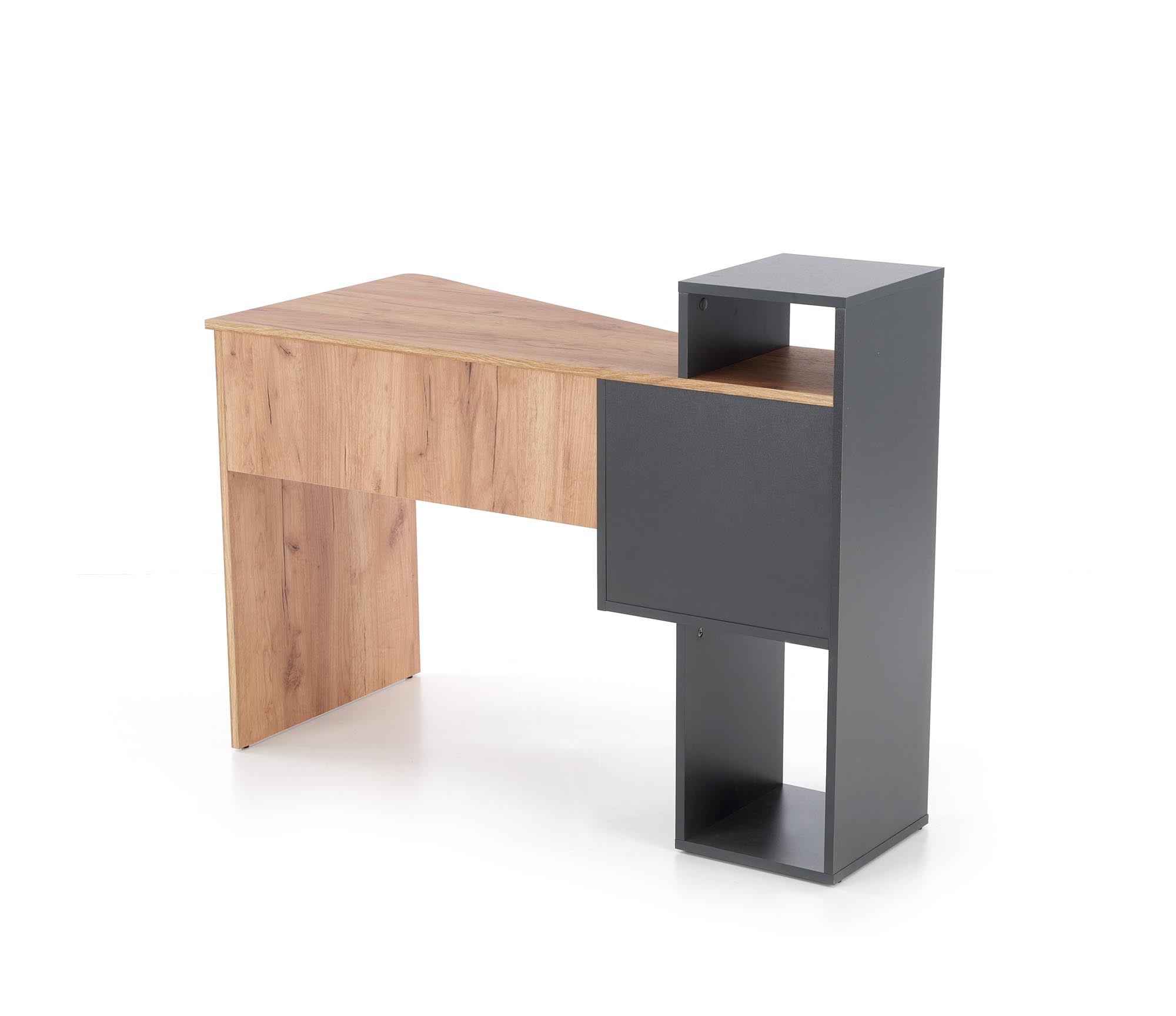 Moderný a praktický. To je hlavná charakteristika písacieho stola CONTI. Trendy kombinácie duba wotan a antracitovej farby vhodne doplnia každú pracovňu aj študentskú izbu. Vďaka praktickým rozmerom (122x57x90 cm) ponúkne dostatok miesta na písanie a nevyhnutné maličkosti. V ľavej časti stola sú tri otvorené poličky a jedna zásuvka , kam môžete schovať všetko, čo nechcete, aby ostatní videli. Stôl je vyrobený z lamina , takže sa dobre udržuje a ľahko ho premiestnite. Je skvelým doplnkom do vášho moderného bytu alebo domu.