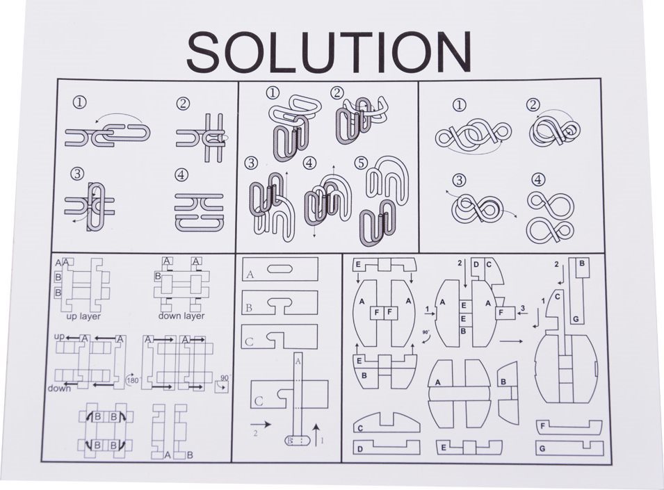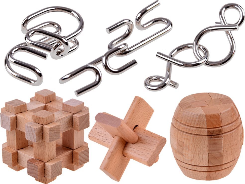 Sada šiestich hlavolamov v rôznom obtiažnostiach. Úlohou je najprv nájsť spôsob, ako tieto dve časti bez použitia sily rozobrať a následne ich zase zložiť do východiskovej pozície.