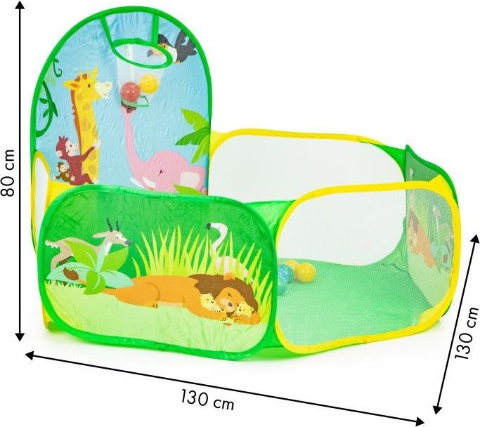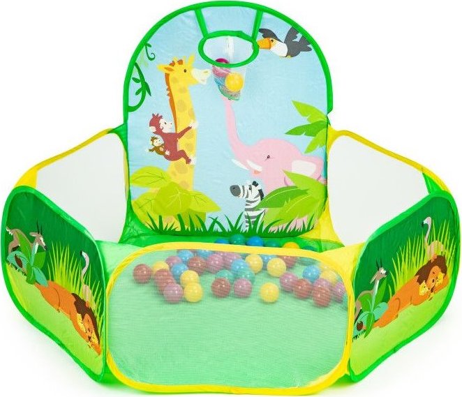 Suchý bazén s loptičkami s motívom džungle. Bazén zaujme svojou veselou farebnosťou na prvý pohľad a zaistí zábavu na dlhú dobu.