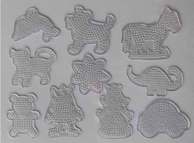 Plastové podložky sú určené na skladanie a tvorenie obrázkov zo zažehľovacích korálikov. Podložky sú priehľadné, aby pod ne bolo možné umiestniť predlohu (nie je súčasťou balenia). Balenie obsahuje: 10 ks podložiek v tvare postáv, zvieratiek a vecí.