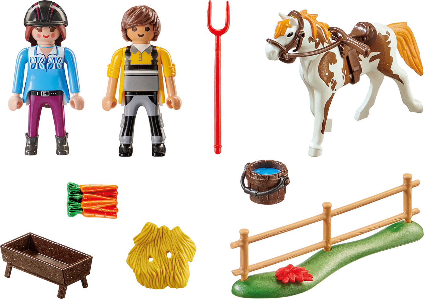 Perfektný začiatok do herného sveta PLAYMOBIL! Kôň má hlad a jeho výbeh musí byť pri jedle vyčistený! Potom bude čas ísť sa prejsť! balenie obsahuje 2 figúrky, kone a ďalších viac ako 5 doplnkov Vhodné pre deti od 3 rokov. Téma: COUNTRY - Konská farma - ďalšie stavebniceVlastnosti