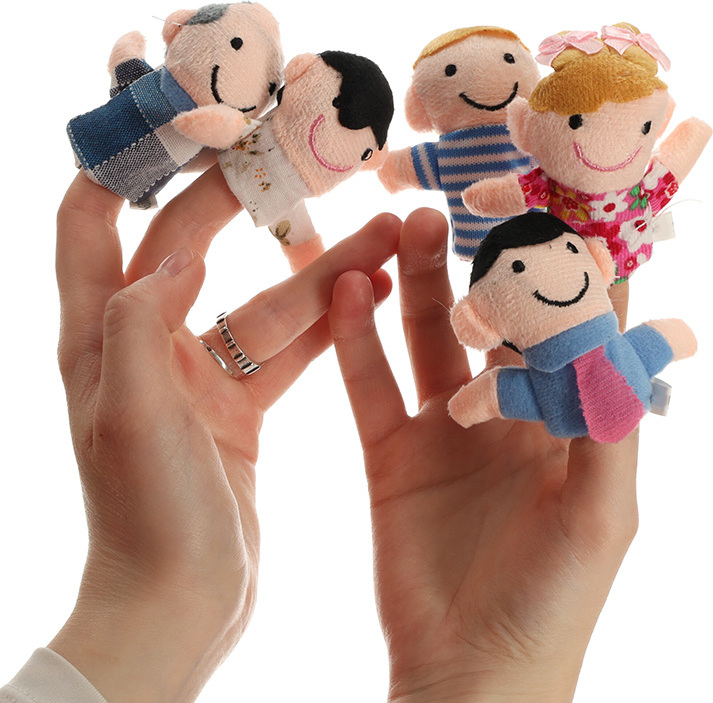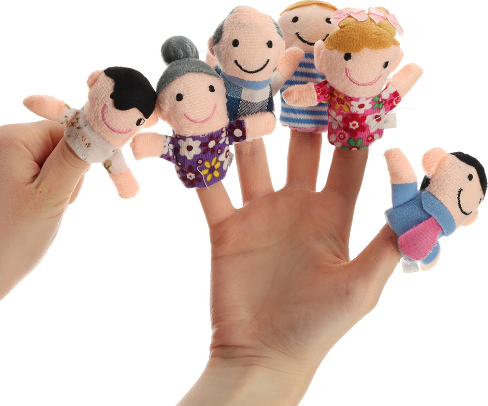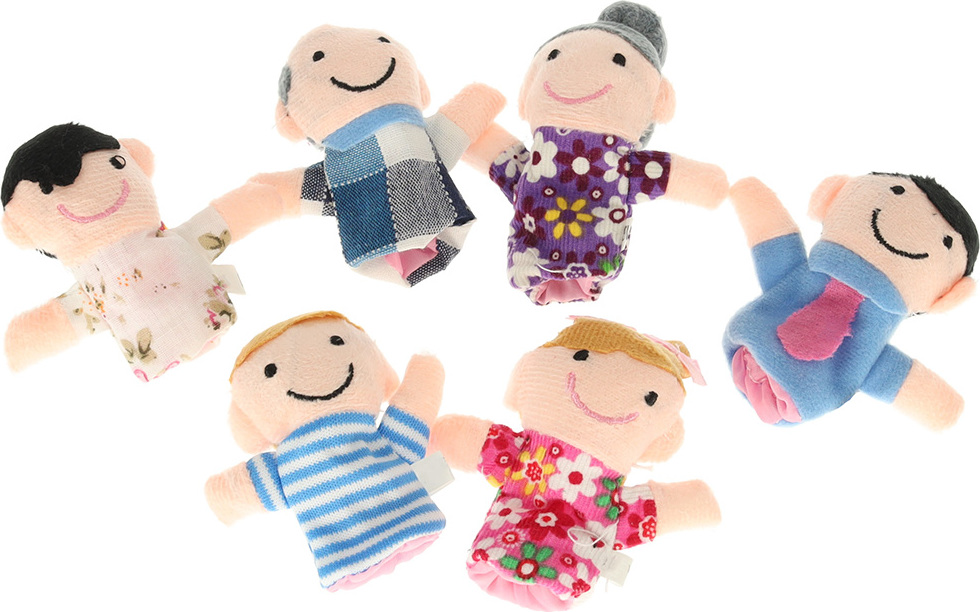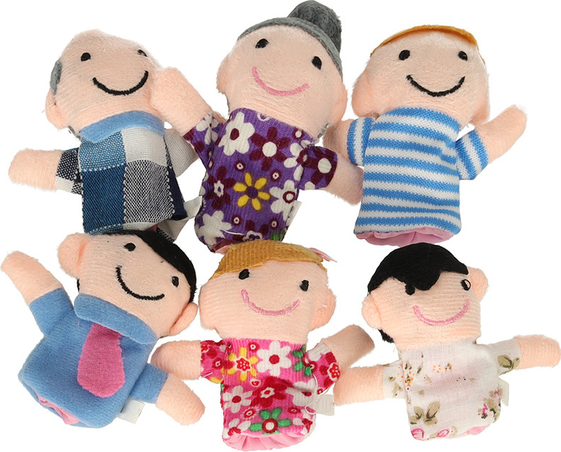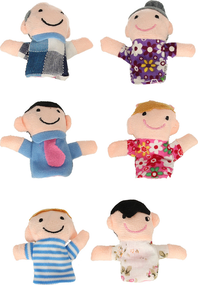 Súprava šiestich rozkošných prstových maňušiek. Každá bábka predstavuje iného člena rodiny, vrátane mamičky, otecka, dcéry, syna, babičky a deduška. Sú ideálne na hranie divadla. Bábky sa ľahko nasadzujú na prsty. Veľmi zábavné a ľahko použiteľné aj pre deti. Bábka poskytuje veľa zábavy, stačí zapojiť fantáziu. Plyšové a roztomilé, ideálne pre domácnosť, školu a ďalšie vzdelávacie centrá.
