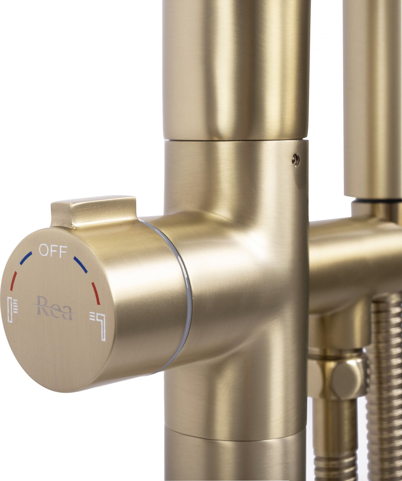 Podlahová vaňová batéria REA CLARK so sprchou - zlatá brúsená