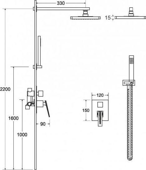 - Set obsahuje podomietkovú batériu, hlavovú sprchu s držiakom, vývod zo steny s držiakom, ručnú sprchu a hadicu