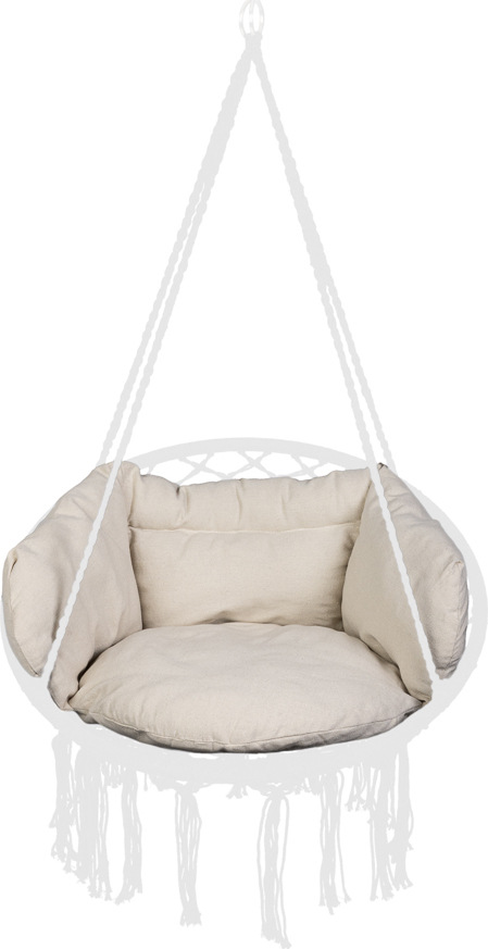 Tento vankúš na hojdačku čapí hniezdo má mäkkú výplň a skladá sa zo štyroch vzájomne prepojených prvkov. Vankúš má svetlú farbu, ktorá dokonale ladí so zeleňou záhrady. Vďaka tomuto vankúšu bude relaxácia na hojdačke mimoriadne pohodlná.