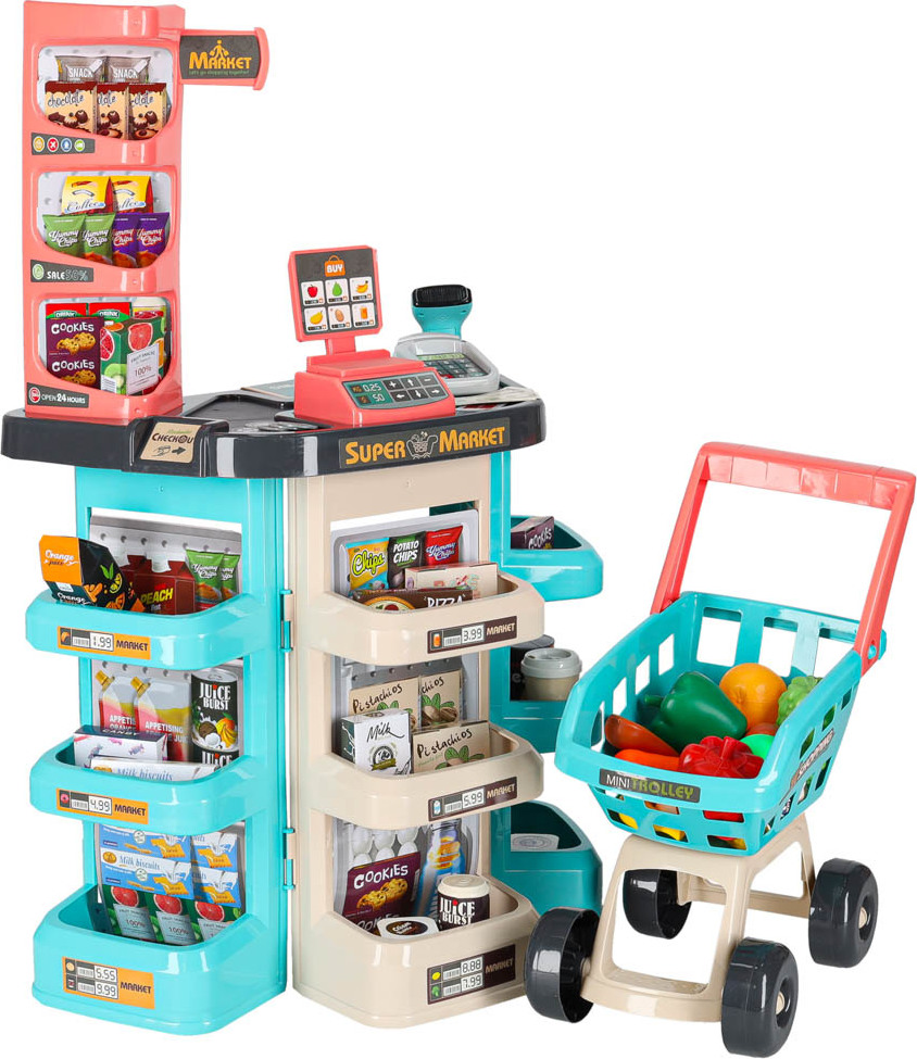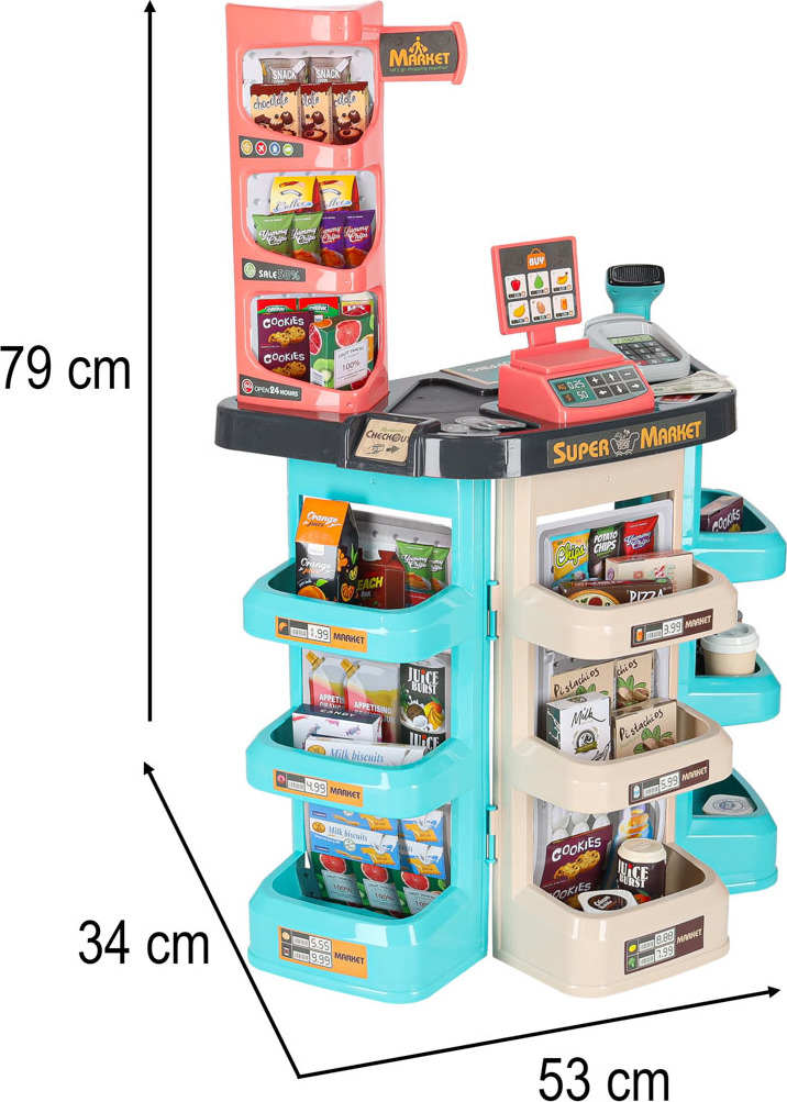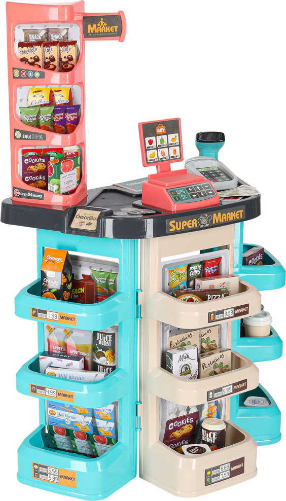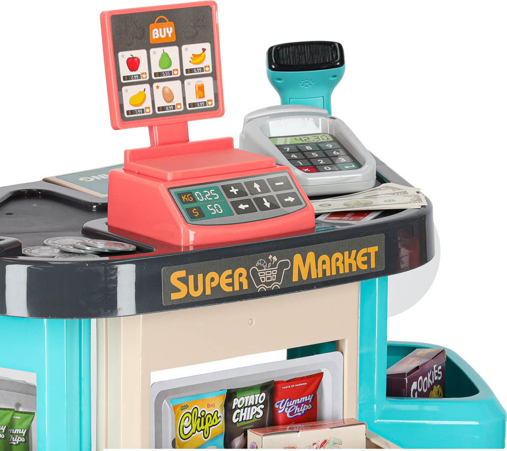Táto senzačná sada je ponukou fantastickej, nikdy nekončiacej zábavy. Hračka bola vyrobená s dôrazom na najmenšie detaily z vysoko kvalitného plastu. Poteší svojimi detailmi – vďaka farebnej grafike, minciam, bankovkám a potravinám si vaše dieťa bude pripadať ako v skutočnom supermarkete.