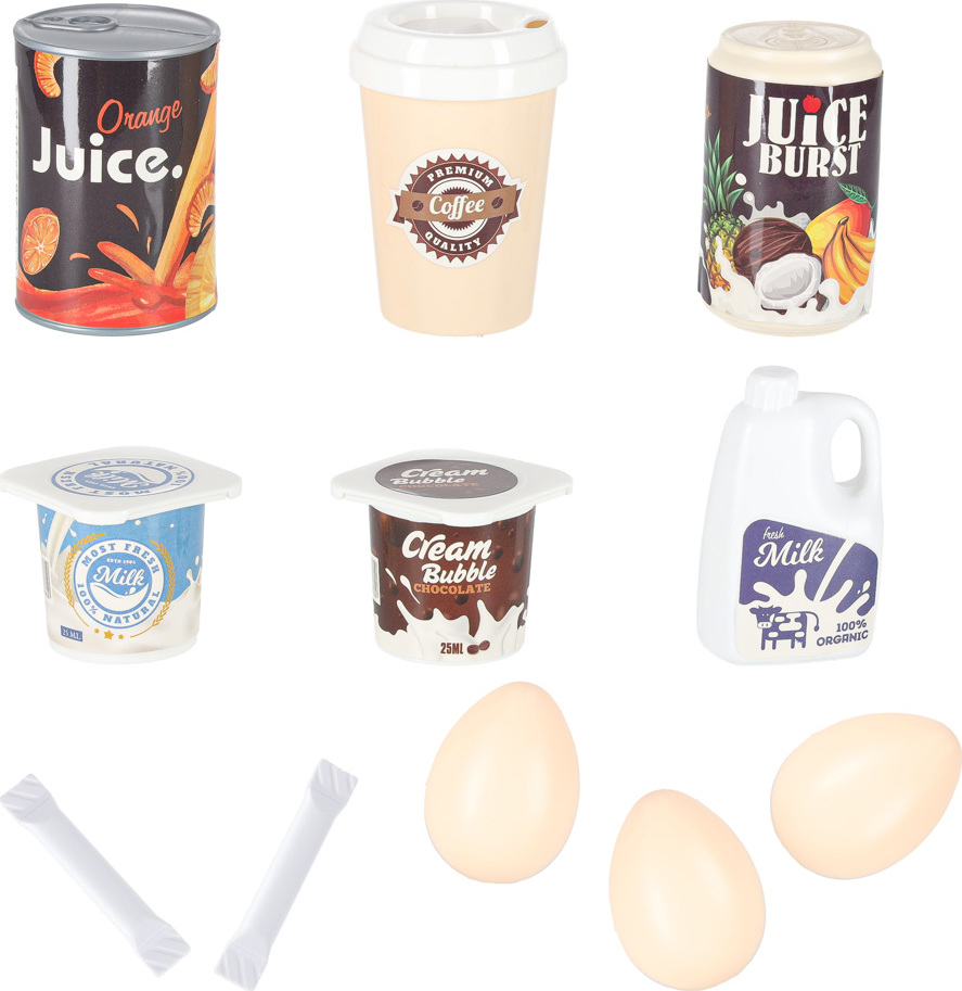 V sade nájdete všetky potrebné prvky na vytvorenie skutočného obchodu s potravinami. Medzi 47 prvkami nájdete plastové ovocie, zeleninu, vajcia a kartónové krabice imitujúce obaly od sušienok, džúsu, cukríkov alebo pizze. Nepopierateľným lákadlom sady je platobný terminál a čítačka čiarových kódov, ktoré vydávajú zvuky podobné skutočným prístrojom. Je čas vyraziť na nákupy! Hra na obchod je nielen zábavná, ale tiež sa pri nej veľa naučíte.