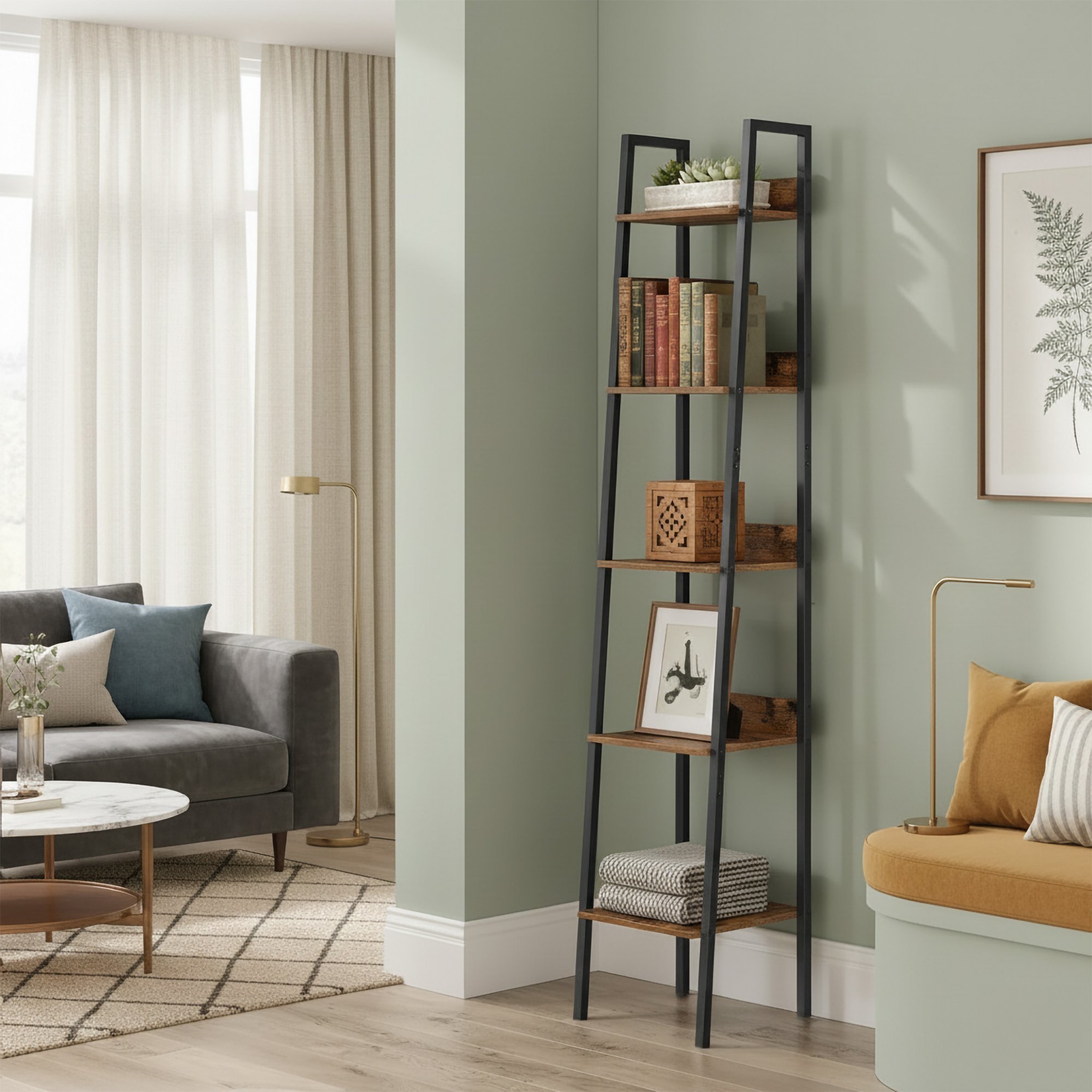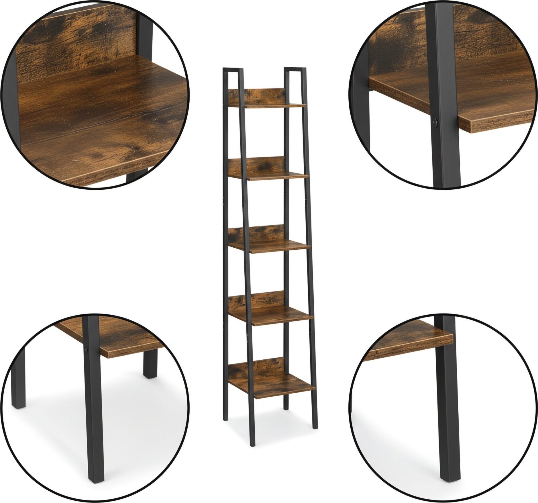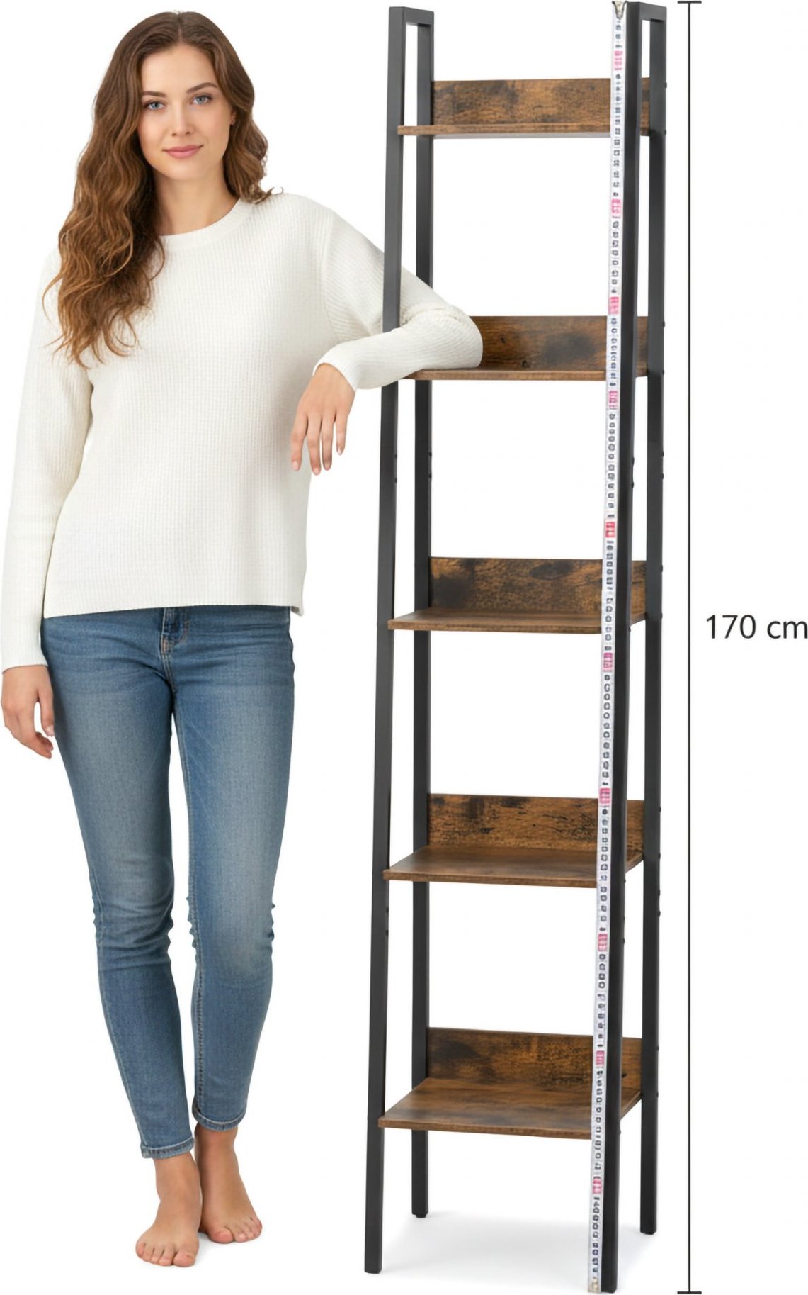Loftový regál/knižnica Riven Rustic je dokonalou kombináciou praktickosti a designu. Jeho elegantný dizajn a päť priestranných políc vám umožnia efektívne vystaviť knihy, dekorácie, rastliny alebo obľúbené doplnky. Stabilná kovová konštrukcia v kombinácii s rustikálnou drevenou povrchovou úpravou vytvára jedinečný kontrast, ktorý dodáva charakter a útulnosť každému interiéru. Výberom regálu Riven Rustic získate nielen robustný a pohodlný kus nábytku do obývačky, pracovne alebo kancelárie, ale aj štýlový doplnok, ktorý priestoru dodá teplú atmosféru v loftovom štýle.
