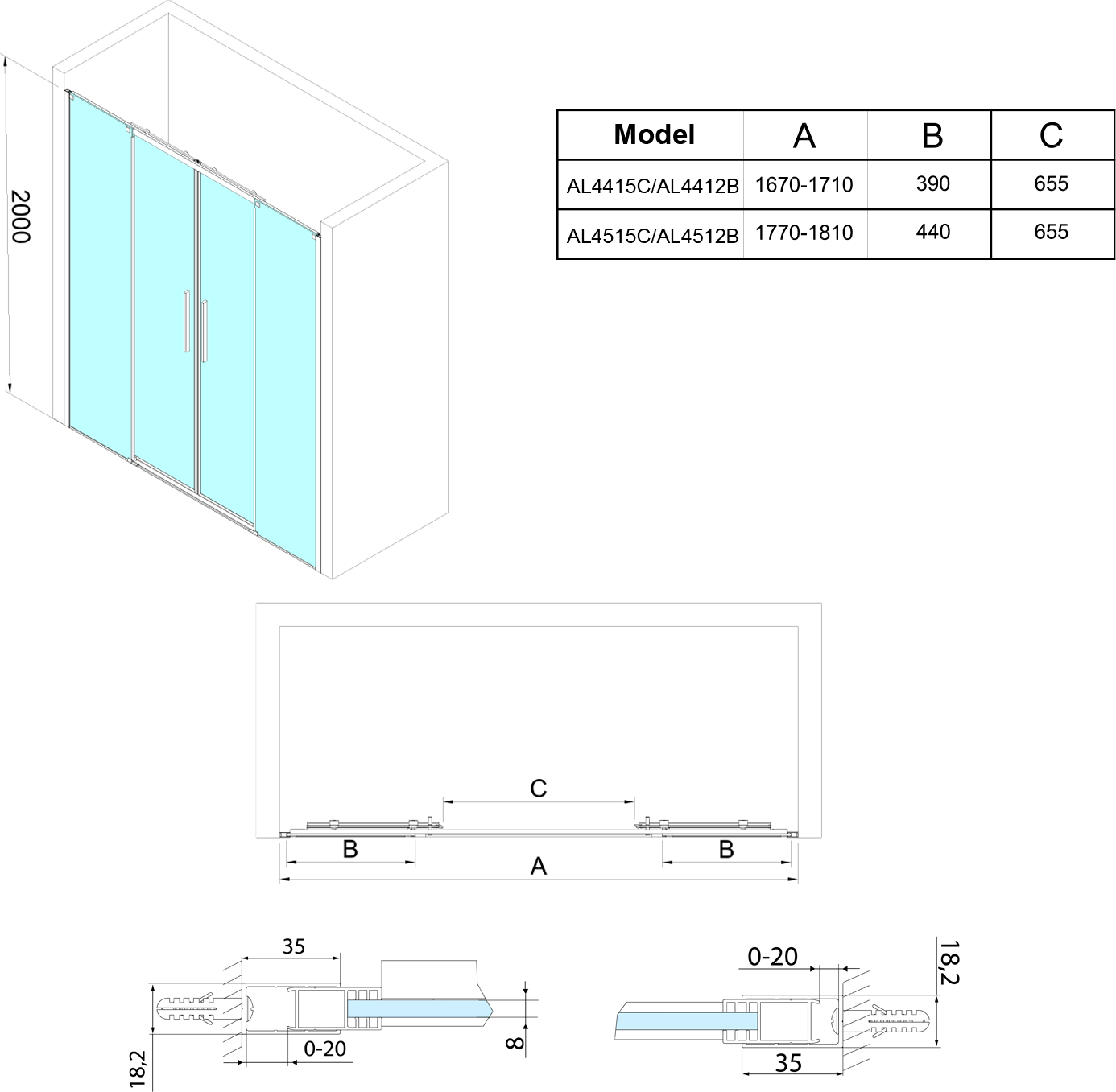 Polysan ALTIS posuvné dvere 1770-1810mm, výška 2000mm, číre sklo AL4515C