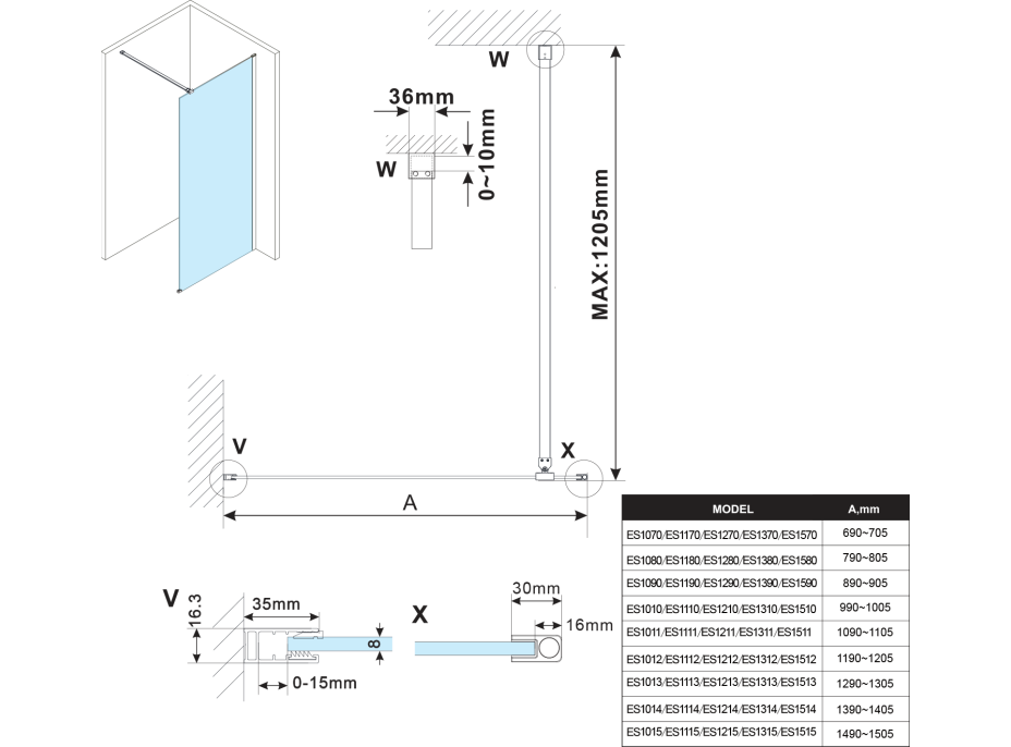 - Stenové profily s toleranciou 15 mm uľahčujú stabilnú montáž zásten, inštalácia je možná na dlažbu alebo sprchovú vaničku