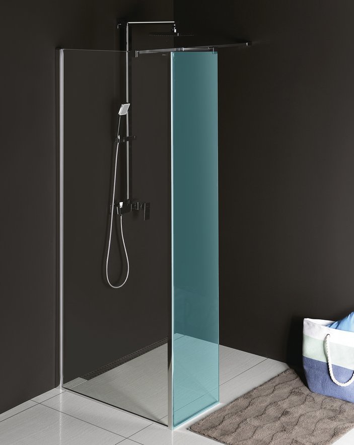 - Je pevná stena z číreho skla a stenový profil s prispôsobením 0-30 mm na montáž k stene