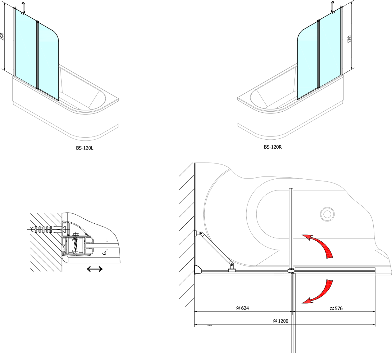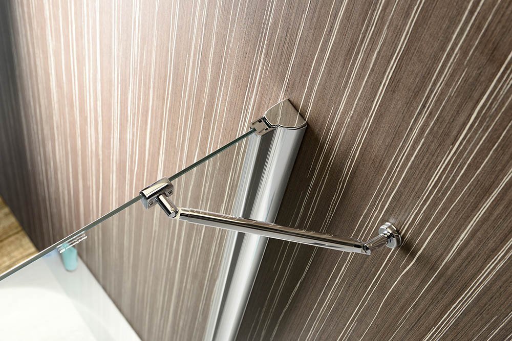 - Zástena je bezrámová s otočným stenovým profilom kratšej strany