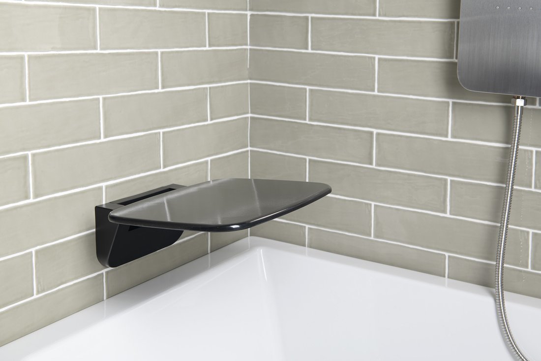 Polysan SAAP BLACK sklopné sedátko do sprchového kúta, 35x32, 8cm, čierna CW1220B
