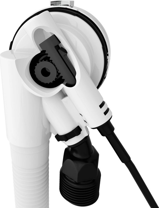 Patentovaný systém otvárania a zatvárania zátky pomocou ozubnice a pastorka: Pri vypúšťaní vody drží zátka v otvorenej polohe, aj keď je hladina vody vysoká. Zároveň sa mechanizmus nepoškodí, pokiaľ na zátku náhodou šliapnete nohou.