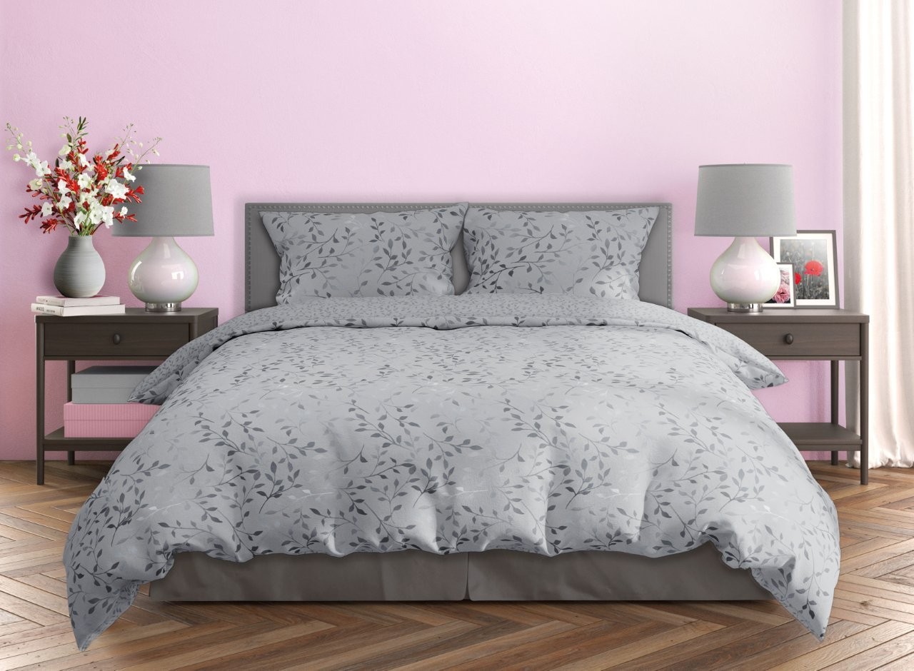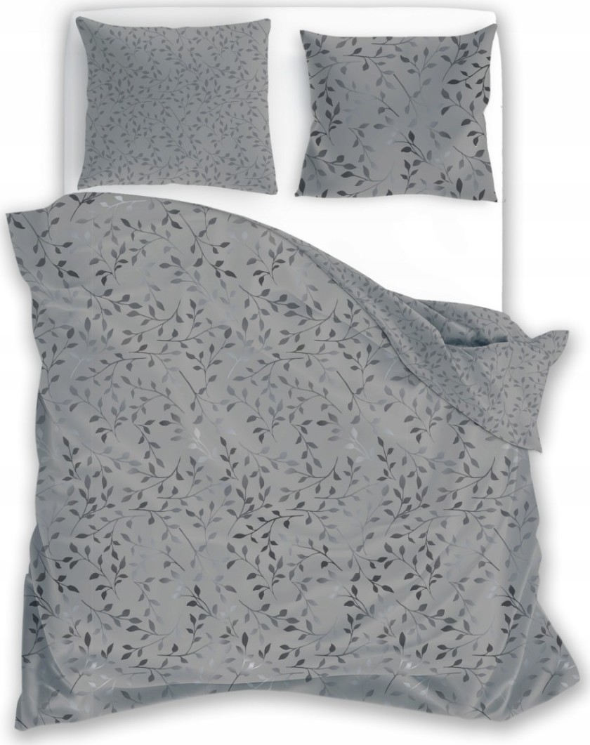 Saténové obliečky MILAGRO VERDE Šedé lístky - šedé - 220x200 cm