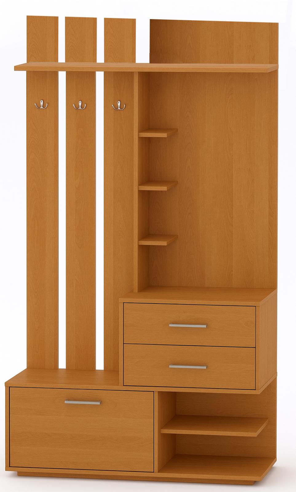 Praktická, moderná predsieňová stena s vešiakom, botníkom a zásuvkami. Produkt je vyrábaný z laminovanej drevotriesky v mnohých farebných prevedeniach. Praktický a ľahko udržiavateľný nábytok. Dodávaný v demonte s obrázkovým návodom na zloženie.