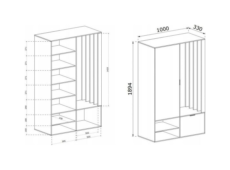 - materiál: 16mm laminovaná nábytková doska s ABS okrajmi, HDF doska, zrkadlo, kov, MDF lamely