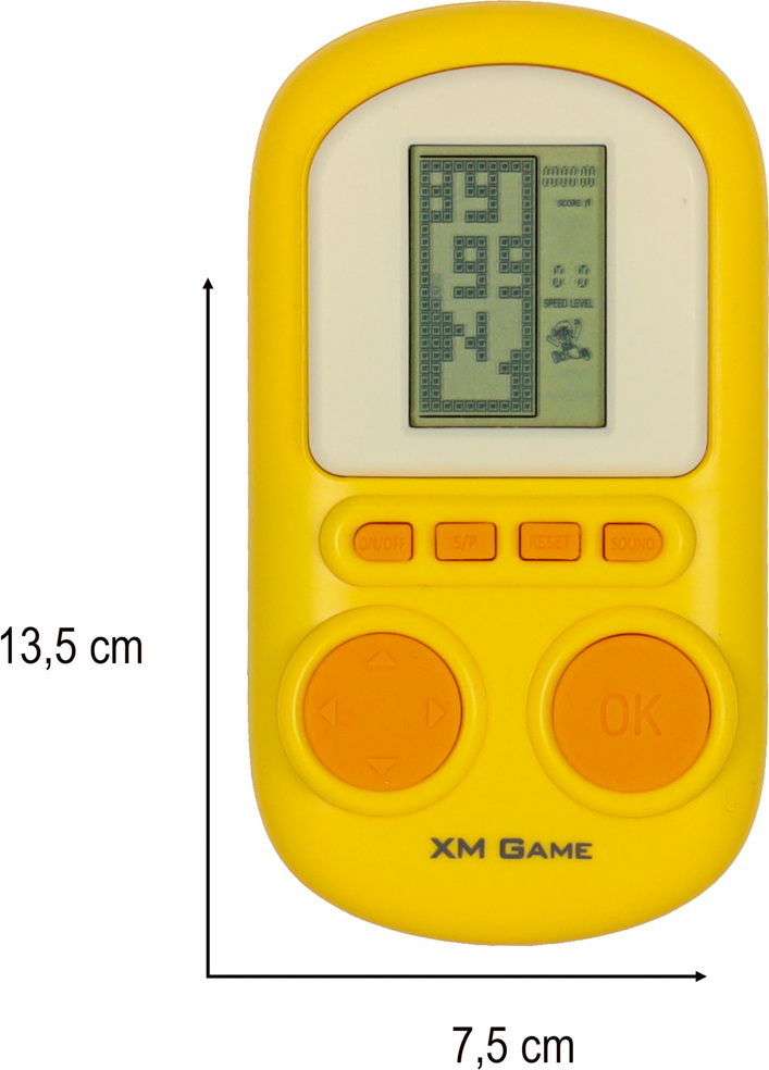 Kompaktné rozmery (13,5 x 7,5 cm) uľahčujú držanie konzoly a je ideálny na cesty, kde si môžete užiť zábavu, nech už idete kamkoľvek. Gumové tlačidlá umožňujú intuitívne ovládanie: ľahké prepínanie hier, pohodlné ovládanie hry a rýchle stlmenie hlasitosti.