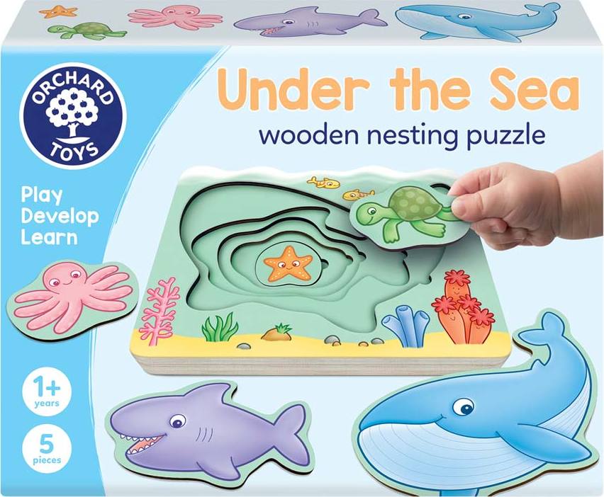Očarujúce sada puzzle s morskými zvieratami. Dieliky s veľrybou, žralokom, chobotnicou, korytnačkou a hviezdicou sa skladajú podľa veľkosti do pevnej hracej dosky. Podnecujú samostatné učenie aj zvedavosť. Spájajú zábavu s rozvojom dôležitých zručností.