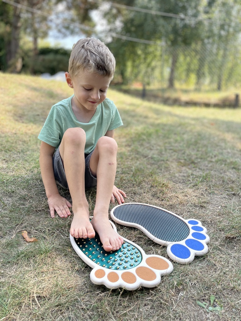 Súprava zmyslových panelov v tvare stôp a kruhov nájde široké uplatnenie v školských zariadeniach, ordináciách lekárov aj v domácom prostredí, najmä pri výučbe a výchove predškolských detí, detí s poruchami zraku, alebo pri terapii. Panely sú navrhnuté a vyrobené s dôrazom na každodenné použitie, sú robustné a odolné a sú skvelou terapeutickou pomôckou pre deti už od 2 rokov. Panely sú opatrené rôznymi povrchmi, sú na dotyk tvrdé, mäkké, chladné, teplé, jemné alebo drsné, čo stimuluje a rozvíja hmat. Skúmanie podobností a rozdielov povrchov, farieb a textúr taktiež trénuje zrak a zlepšuje vnímavosť. Jemnou stimuláciou panelov sa upokojí emócia, zníži sa stres a svalové napätie. Pri chôdzi po chodníku tvorenej zmyslovými stopami sa rozvíja zmysel pre rovnováhu, hrubá motorika a koordinácia, čo pozitívne ovplyvňuje orientáciu v priestore a celkový vývoj dieťaťa. Panely je možné využiť aj pri práci s hyperaktívnymi deťmi alebo deťmi, ktoré majú problémy so sebareguláciou.