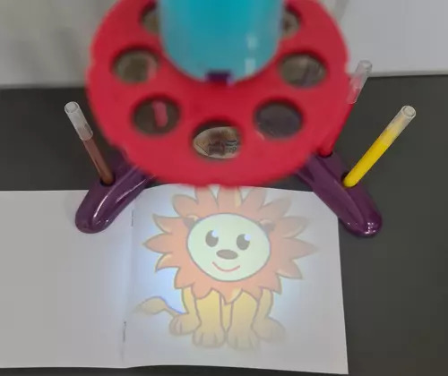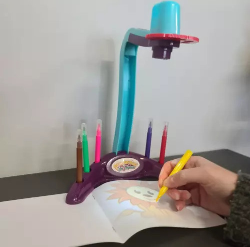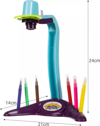 Vďaka projektoru sa deti naučia správne kresliť a maľovať. Projektor má podsvietenie a po umiestnení diapozitívu sa na papier zobrazí vybraný vzor. Súčasťou sady sú 3 disky s 24 obrázkami (1 kruh má 8 obrázkov) s témami ako sú vozidlá, zvieratá, ovocie a zelenina. Projektor je dodávaný spolu s fixami a zošitom na maľovanie.