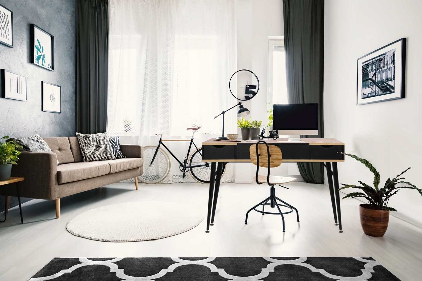 Písací stôl LOFT so zásuvkami - dub sonoma / čierna