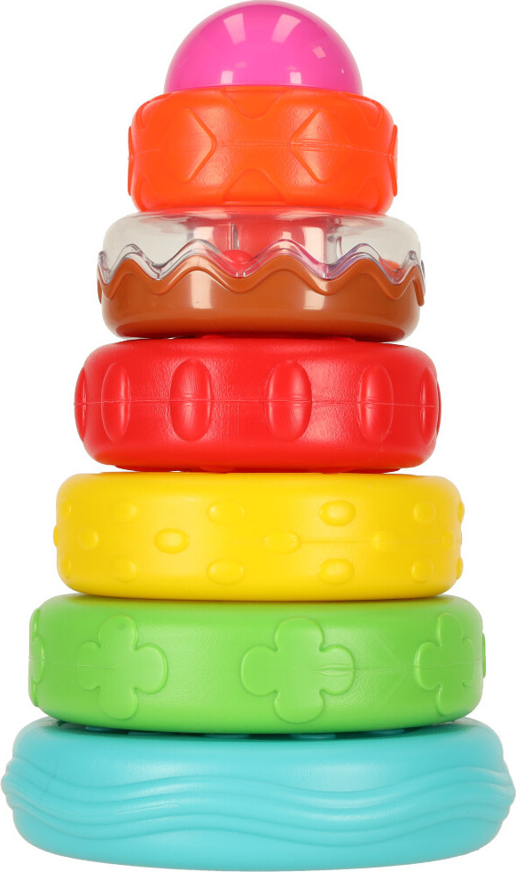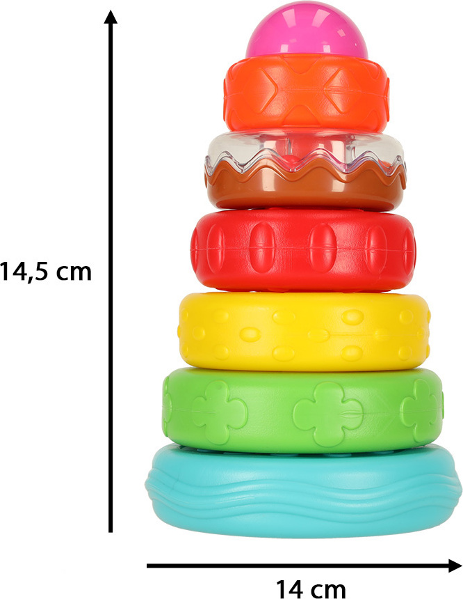Veľká, farebná, zmyslová a vzdelávacia – to je len niekoľko vlastností predstavenej veže! A keď ich všetky spoznáte, určite zistíte, že je to ideálna hračka pre vaše dieťatko! Sedem veľkých blokov je možné skladať na seba a vytvoriť tak pôsobivú pyramídu! Každý dielik má inú farbu a inú štruktúru. Jeden z blokov má navyše v sebe guličky, ktoré môžete vidieť cez priehľadnú hornú časť. Dokončená veža vyzerá fenomenálne - ako sedemvrstvová torta, v ktorej má každá vrstva inú farbu a chuť (alebo v tomto prípade textúru!).