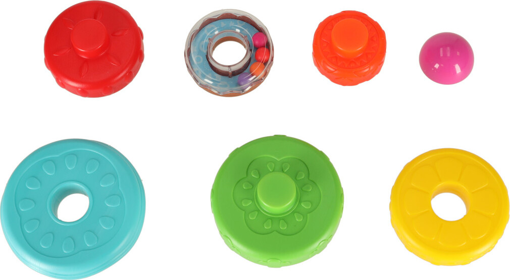 Kruhy sú dostatočne veľké, aby sa s hračkou mohli hrať aj deti od jedného roka. Každý diel farebnej pyramídy je vyrobený z odolného plastu. Kvádre sú navyše hladko opracované – bez ostrých hrán –, takže je hranie s nimi bezpečné! Farebná pyramída bude dokonalým darčekom pre každé dobrodružné dieťa!