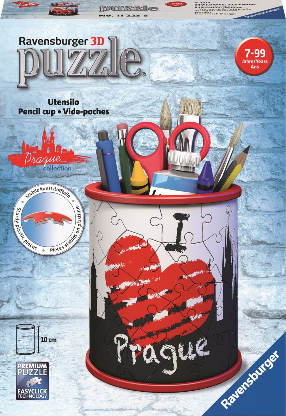 Ceruzky sa už nebudú váľať po stole a navyše bude krásny darček vždy na očiach! Ďalší z radu praktických predmetov vo forme 3D puzzle z edície RAVENSBURGER Prague sa stane skvelým darčekom pre každú príležitosť. A nemusí slúžiť iba ako ceruzkovník, ale napríklad ako stojan na drobnosti. Špeciálne zakrivené dieliky, ktoré presne zapadnú na svoje miesto, vytvoria kúzelný stojan nielen na písacie potreby, ale aj na ďalšie drobnosti. Dieliky sú vyrobené z pevného plastu a zaručia vynikajúcu stabilitu bez nutnosti lepenia. 3D puzzle RAVENSBURGER je možné skladať podľa motívu (obtiažnejší variant) alebo podľa praktického číslovania na zadnej strane dielikov. Balenie obsahuje: puzzle, dno a horný ozdobný krúžok. Rozmer zloženého puzzle cca 7,8 x 7,8 x 10 cmVlastnosti