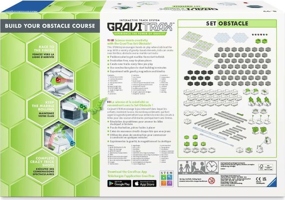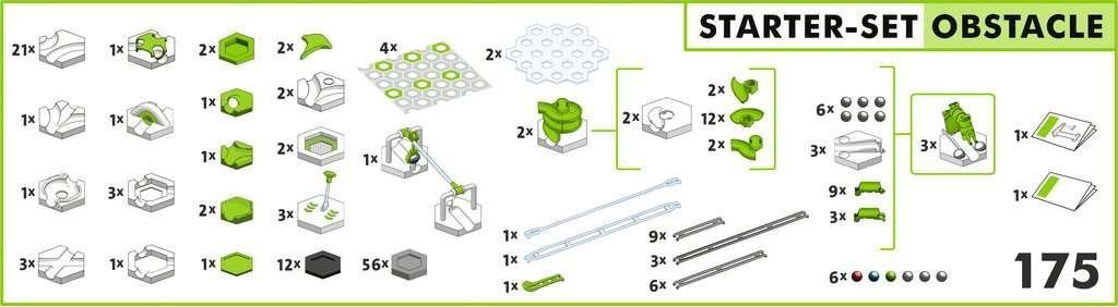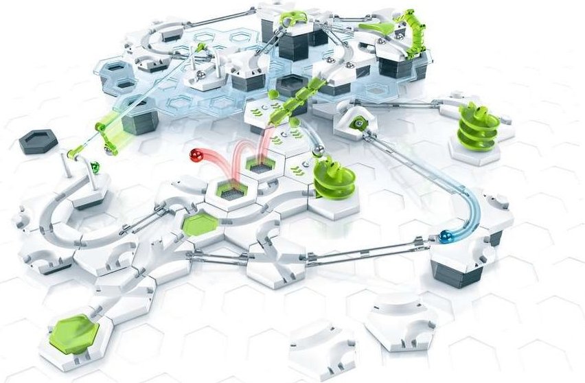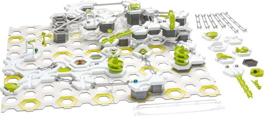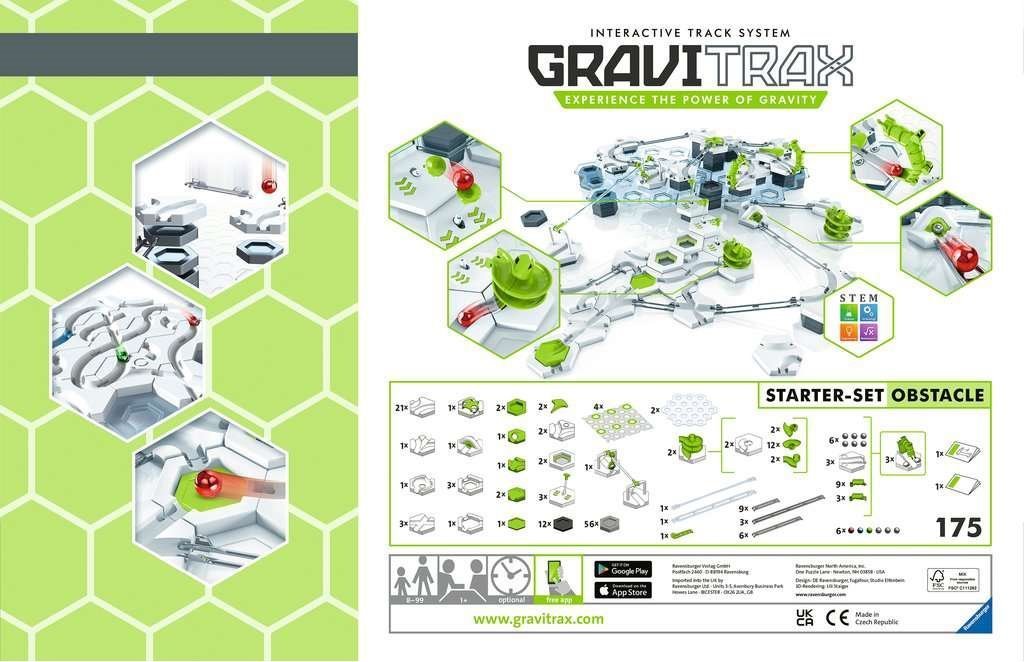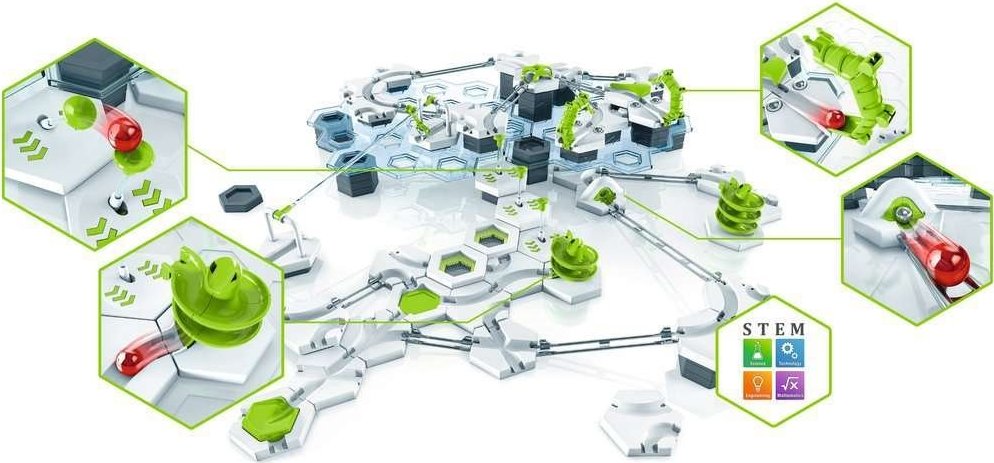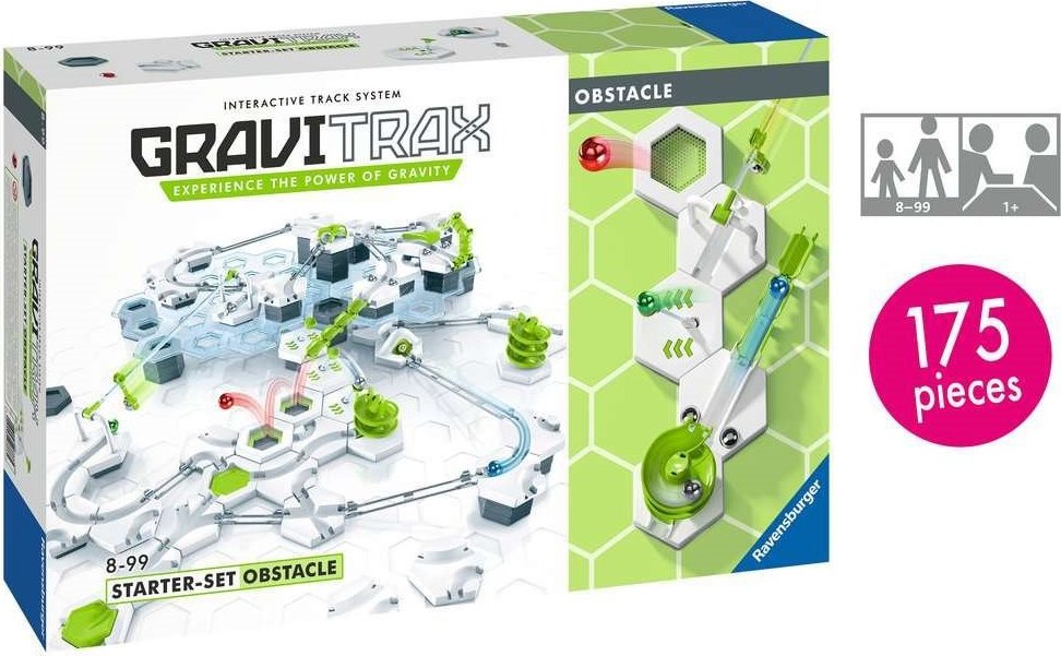 GraviTrax od nemeckého výrobcu Ravensburger je modulárna guličková dráha s možnosťou ďalších rozšírení, ktorá nadchne malých aj veľkých staviteľov. Stavajte, pretekajte s guličkami a vyskúšajte silu gravitácie v praxi! Prepracovaná stavebnica s variabilnými dielikmi Vám umožní vytvoriť si vlastný systém spletitých guličkových dráh alebo postaviť niektoré z predpripravených riešení. Z jednotlivých stavebných prvkov vytvoríte cestičky plné rôznych akcií, ktorými budú guličky postupne prechádzať. Systém guličkových dráh RAVENSBURGER GraviTrax môžete ľubovoľne rozširovať o ďalšie a ďalšie doplnky a vytvárať tak nové podoby zložitých a unikátnych cestičiek s vytunenými prekážkami. Stavebnica zaručuje nikdy nekončiacu zábavu okorenenú rozširovaním vedomostí o vlastnostiach gravitácie. Štartovacia sada obsahuje 175 dielov: návod, stavebné plány, 4 základné dosky, 2 priehľadné roviny, 6 guličiek, 56 výškových dielov, 12 výškových dielov nízkych, 2 rohové diely, 21 zákrut, 3 križovatky, 2 výhybky, 1 , 1 štartovný diel, 1 tenká koľajnica extra dlhá, 1 pomalá koľajnica extra dlhá, 3 dlhé koľajnice, 6 stredných koľajníc, 9 krátkych koľajníc, 3 dĺžkovo nastaviteľné mostíky, 1 magnetický kanón, 3 prevody, 2 trampolíny, 1 lan 1 cieľový rebrík, 4 základové diely, nadstavby na základové diely: 2 lapače, 1 voľný pád, 1 roztrojka, 1 cieľ. Vyrobené v Českej republike. Plánujte dráhy odkiaľkoľvek! S pomocou aplikácie GraviTrax môžete dráhy navrhovať aj na svojom mobile alebo tablete a potom všetko vyskúšať v praxi.Vlastnosti