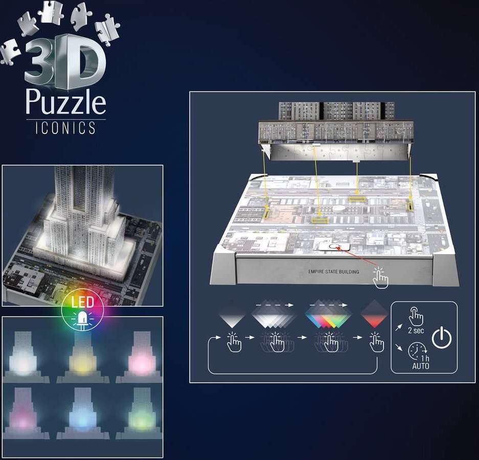RAVENSBURGER Svietiace 3D puzzle Iconics: Empire State Building (Nočná edícia) 216 dielikov