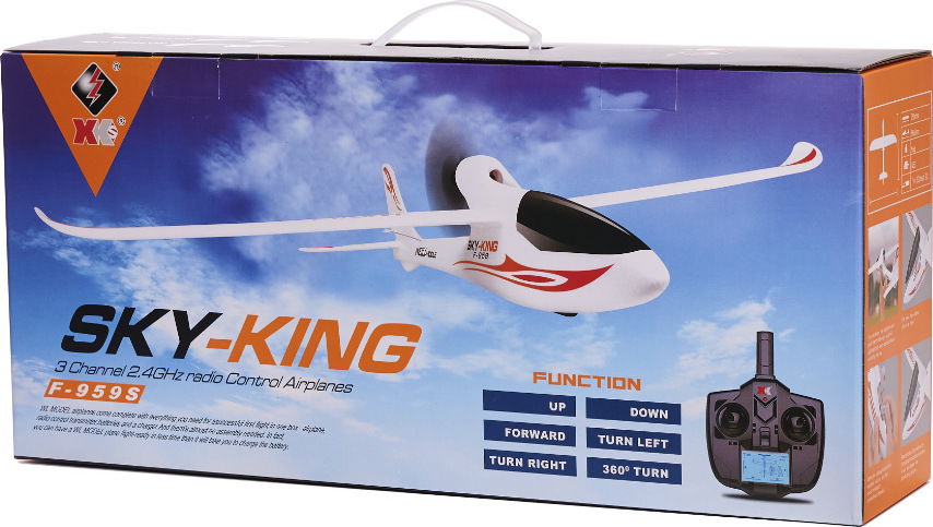 Motorový klzák Sky King F959S od WLtoys je skvelou voľbou pre tých, ktorí hľadajú model pripravený na hranie hneď po vybalení z krabice. Akrobacie a kaskadérske kúsky na plný plyn sú skvelým spôsobom, ako tráviť voľný čas vonku, ideálny pre každého, kto s modelovaním lietadiel ešte len začína.