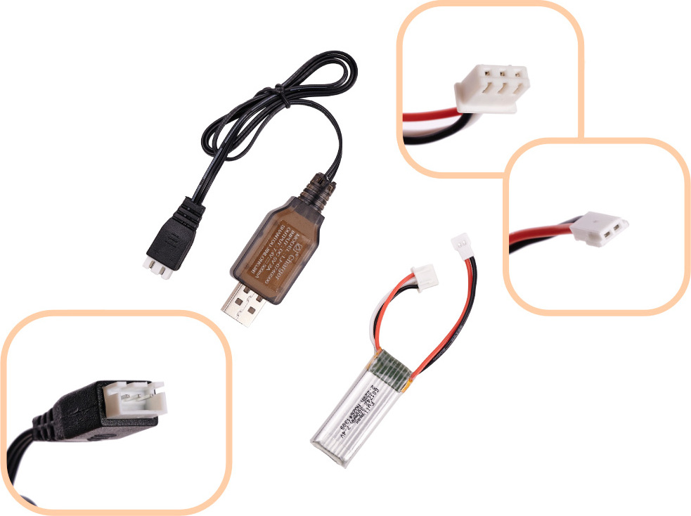 - napájanie lietadla: 7,4V 300 mAh LiPo batéria