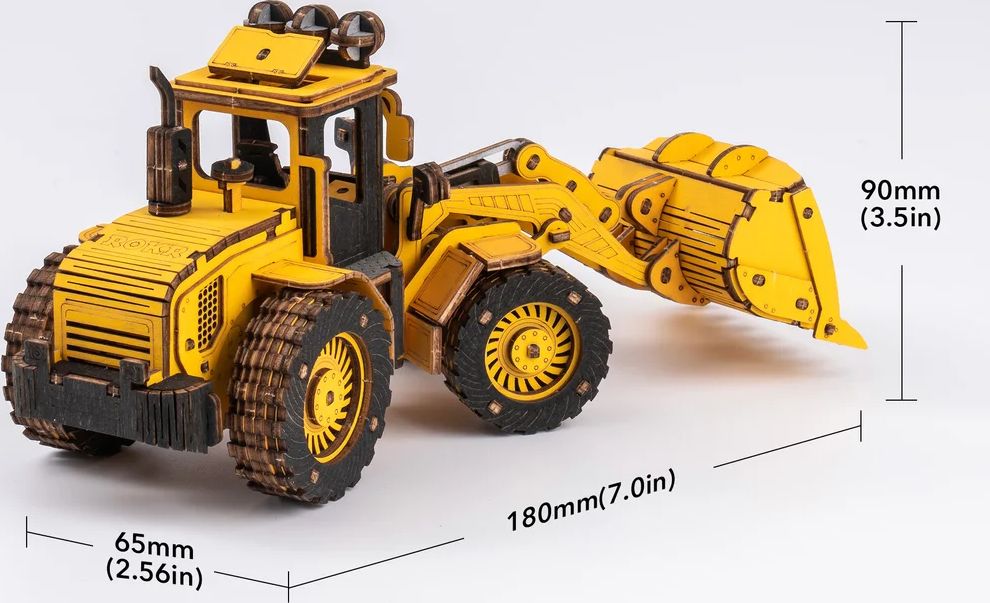 Prepracovaný realistický model patrí do rady ROBOTIME ROKR Engineering Vehicles Model Series. Realistické a pohyblivé detaily. Bez nutnosti lepenia. Laserom vyrezávané dieliky z 2 mm lipovej preglejky. Rozvíja technické myslenie, predstavivosť, cit pre detail a jemnú motoriku. Prekrásny darček pre väčšie deti aj dospelých. Po dokončení pôsobivá dekorácia. Načítaním QR kódu z obalu zobrazíte video. Obtiažnosť: 2 z 5 (podľa rozdelenia Robotime). Orientačná doba na zloženie: 2,5 hodiny. Poznámka: detailný obrázkový návod obsahuje doplňujúce texty v angličtine. Rad Engineering Vehicles obsahuje 5 produktov: vysokozdvižný vozík TG413K, bager TG508K, buldozér TG509K, sklápač TG603K, cestný valec TG701K. Rozmer zloženého puzzle cca 18 x 6,5 x 9 cmVlastnosti