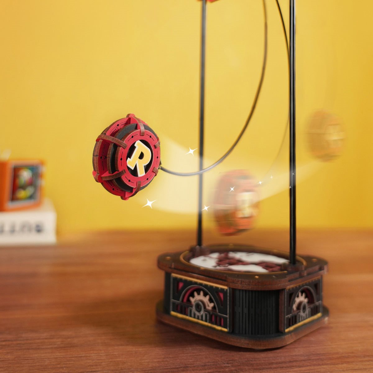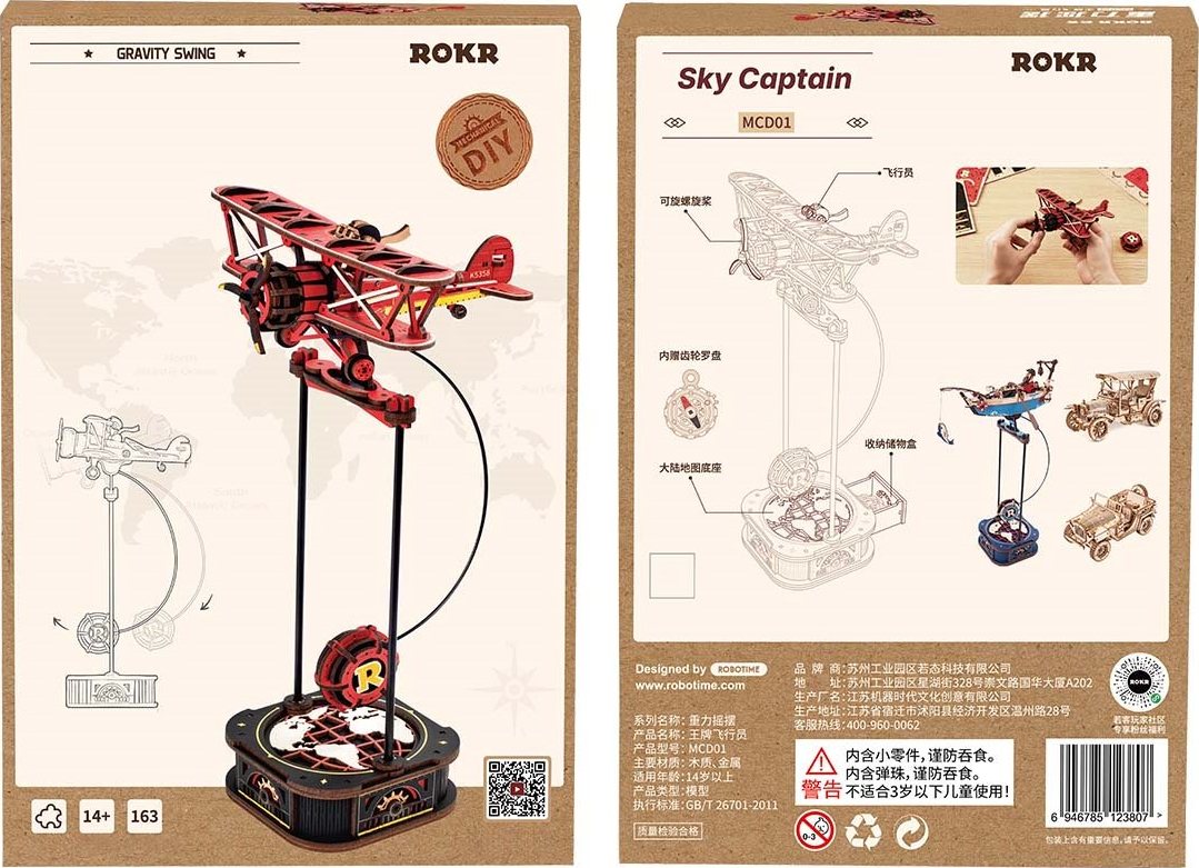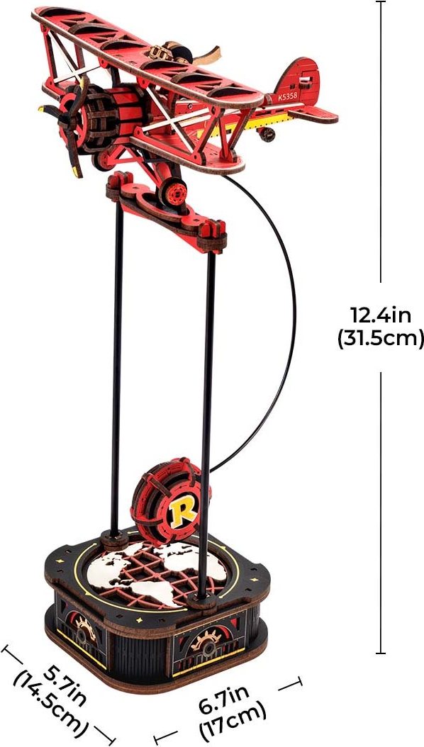 Vo vzduchu lieta model lietadla zo série ROBOTIME Roker Gravity Swing. Pripútajte sa do červeného dvojplošníka s otvoreným kokpitom, točiacim sa vrtuľou a pohyblivými kormidlami. Lietadlo sa nakláňa a pohupuje, ako by lietalo medzi oblakmi a vezme vás na dynamické dobrodružstvo. 3D drevená puzzle sada s mechanickými prevodmi. Gravitačné kyvadlo.