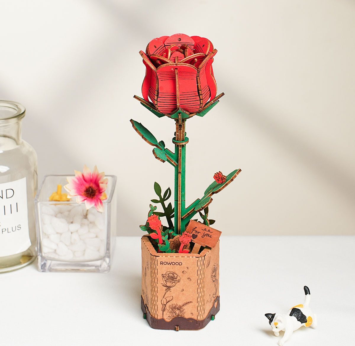ROBOTIME Rowood 3D drevené puzzle Červená ruža 106 dielikov