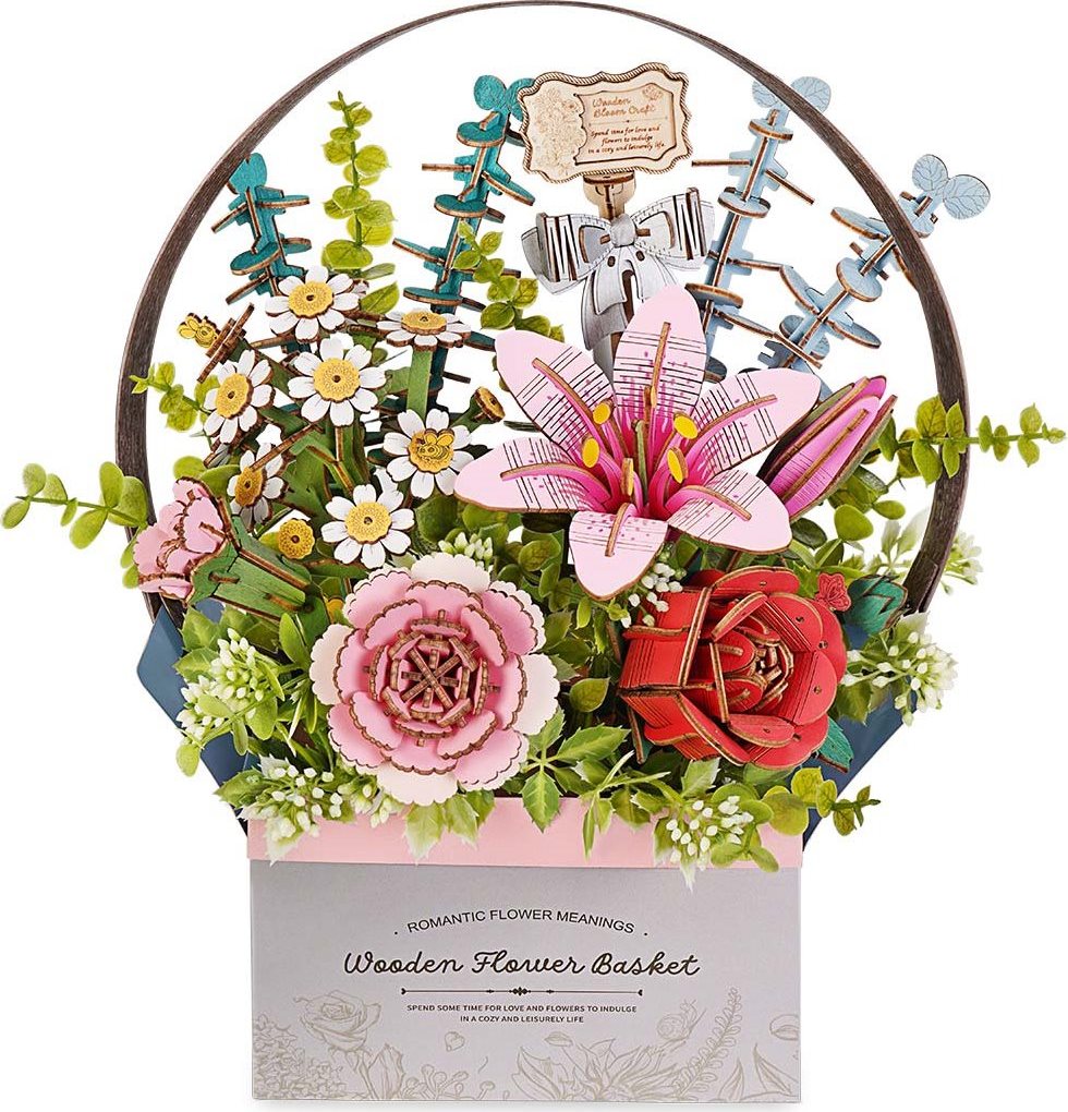 ROBOTIME Rowood 3D drevené puzzle Košík s kvetmi 428 dielikov