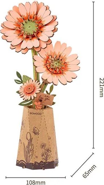 ROBOTIME Rowood 3D drevené puzzle Oranžová gerbera 105 dielikov