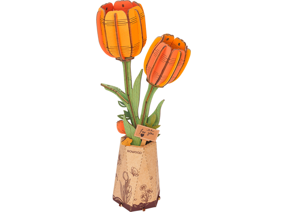 ROBOTIME Rowood 3D drevené puzzle Oranžové tulipány 76 dielikov